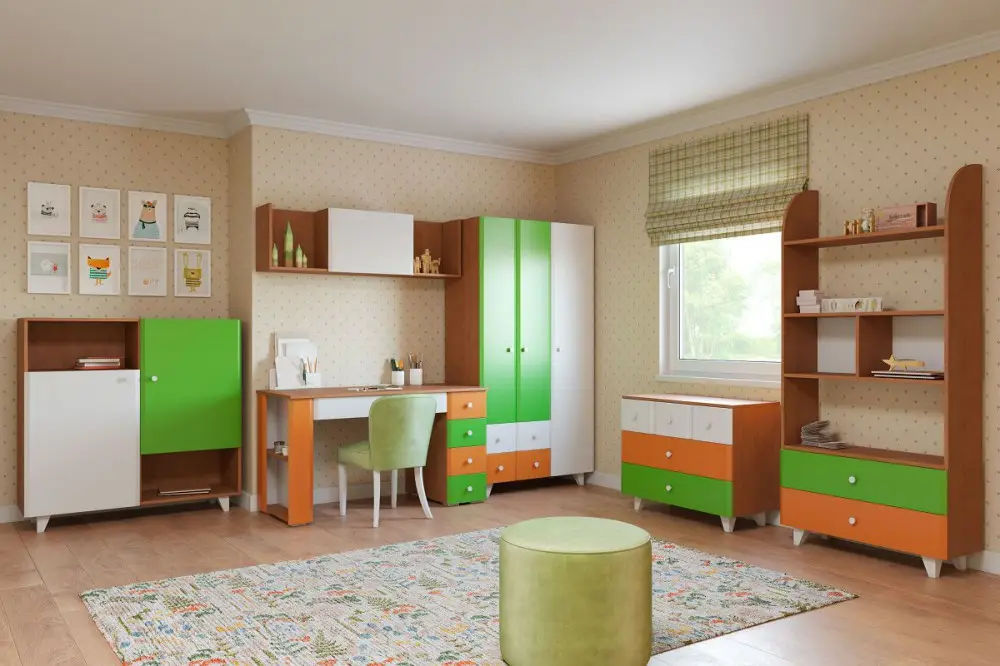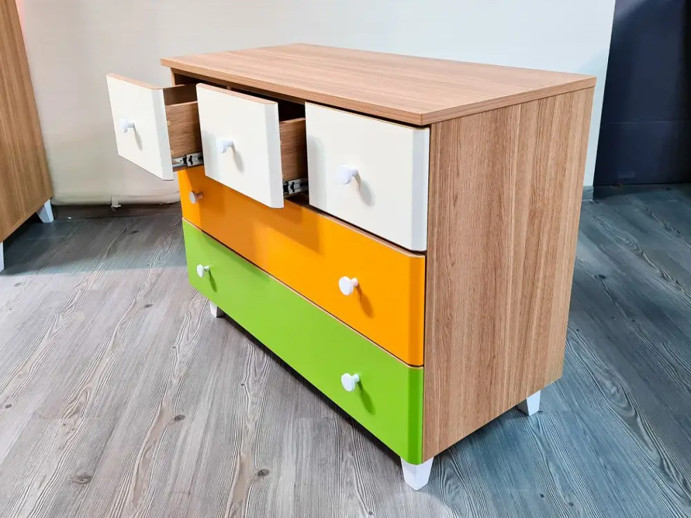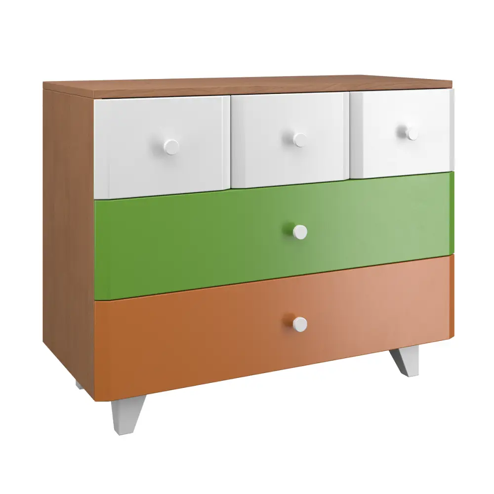 Комод Шайни детский, с 5 ящиками, бежевый, белый, зеленый, оранжевый, ALP00010031