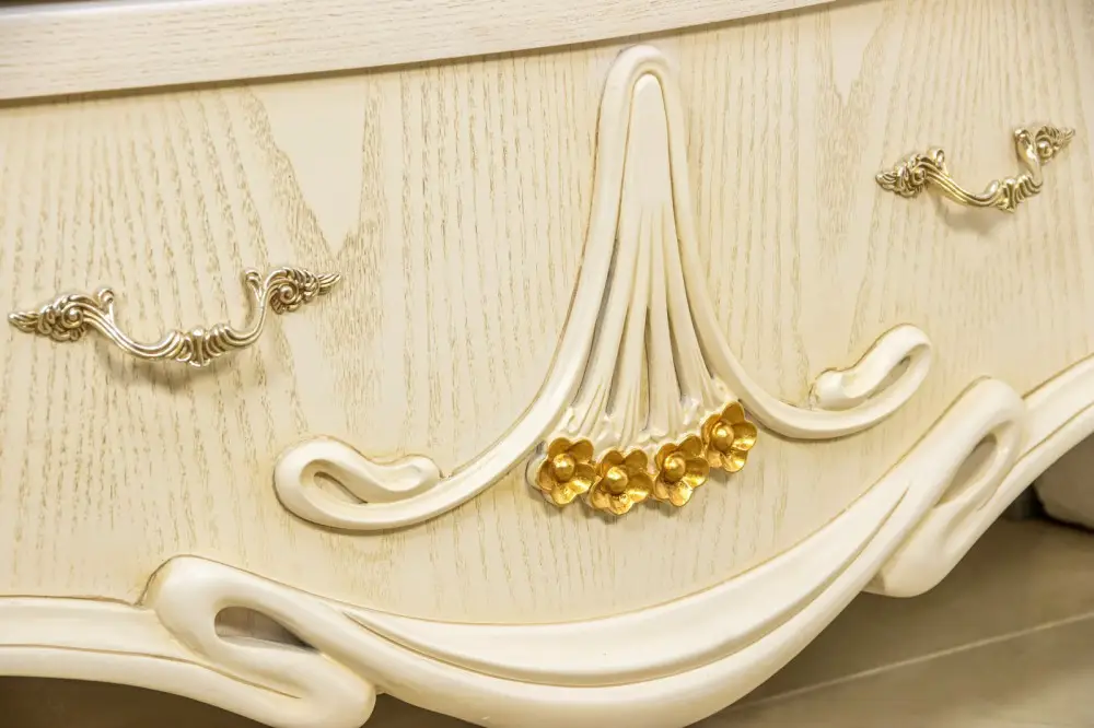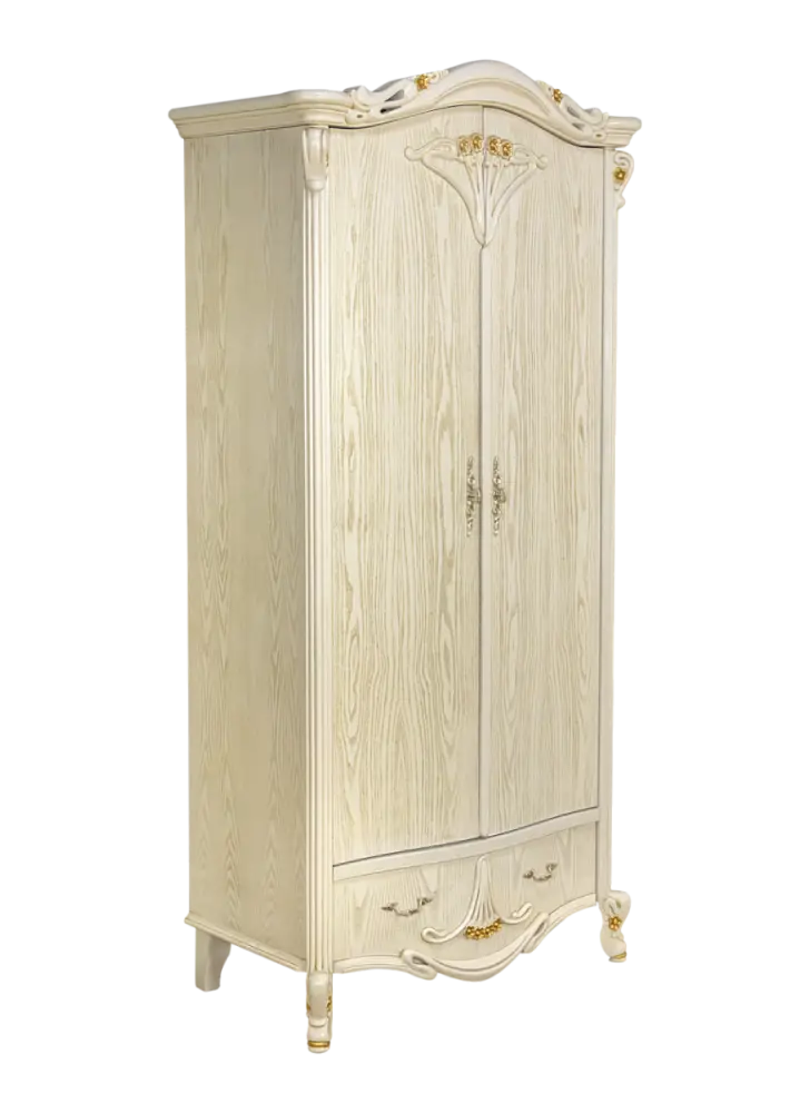 Шкаф для одежды 2х-дверный детский Amelia выполнен из массива северной березы в шпоне ясеня, полки шпонированны ясенем, покрыт эмалью, патиной. Лицевая фурнитура в цвете золото. Состоит из 2х глубоких ящиков, рассчитанных на ежедневную эксплуатацию, 2х штанг для одежды, механизм хранения – юбочница \ брючница, для украшений и ремней. Глубокий и густой цвет, массивная и элегантная форма, сложная натуральная и экологически чистая мебель Amelia разрабатывалась Миланским дизайн бюро. Вся мебель коллекции выполнена из массива северной березы, в том числе скрытые элементы. Мебель из натурального дерева не выделяет вредных веществ и имеет долгий срок службы. Каждая деталь изделия вырезана вручную, а патина из натурального серебра и изящные линии придают изделиям особенно элегантный и роскошный вид. Дизайн мебели коллекции Amelia исполняется в классическом стиле по строгим итальянским технологиям. Разнообразие мебели поможет обустроить любые квадратные метры: гостиную, кухню столовую, кабинет, спальню.