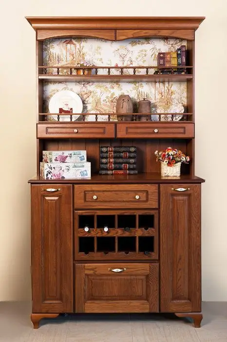 Буфет «Марта 1» имеет глубокий, благородный цвет, элегантная форма, эстетичная и торжественная мебель, с эффектным и запоминающимся дизайном, станет богатым и почетным украшением домашнего интерьера, наполнив его уютом и практичностью. Фасадные элементы изготовлены из массива ореха. В буфете в верхней части расположены полки с балюстрадами, в нижней части предусмотрен отсек для бутылок, задняя стенка декорирована, что делает буфет более функциональным и интересным. В мебели использована качественная фурнитура европейского качества.