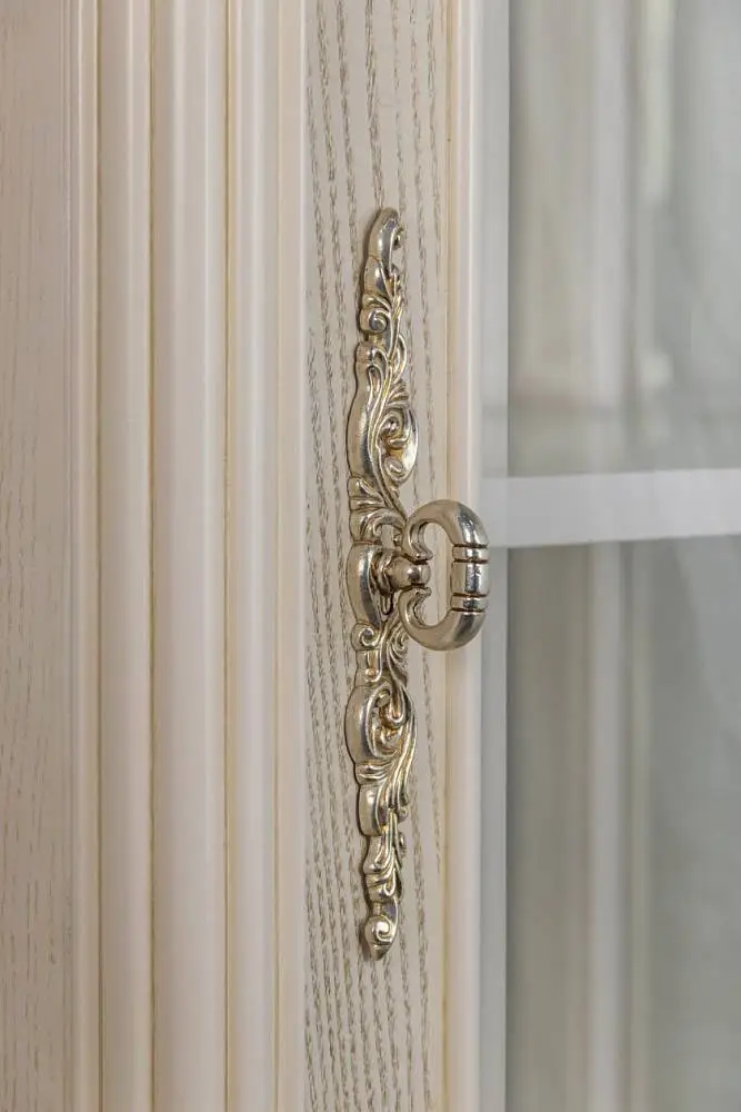 Витрина Amelia выполнена в классическом стиле из массива северной березы в шпоне ясеня, покрыта эмалью с нанесением патины.