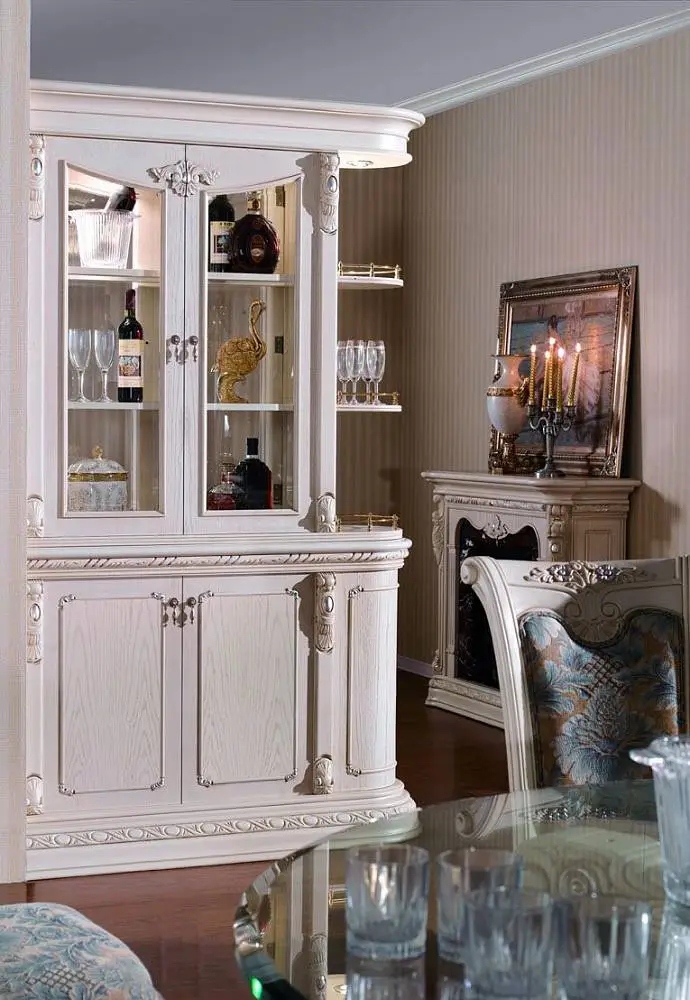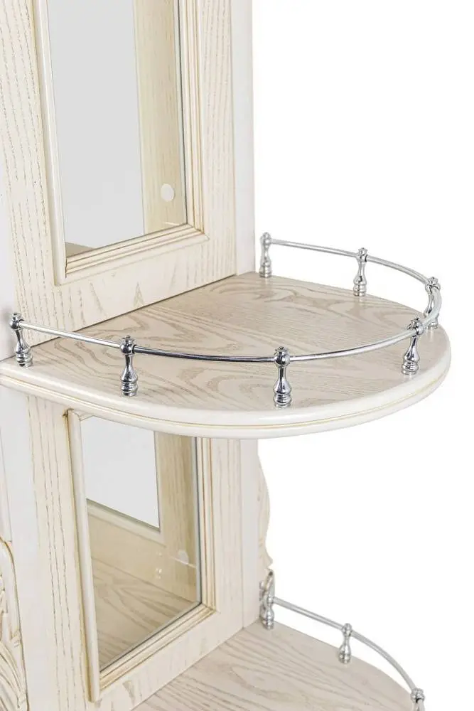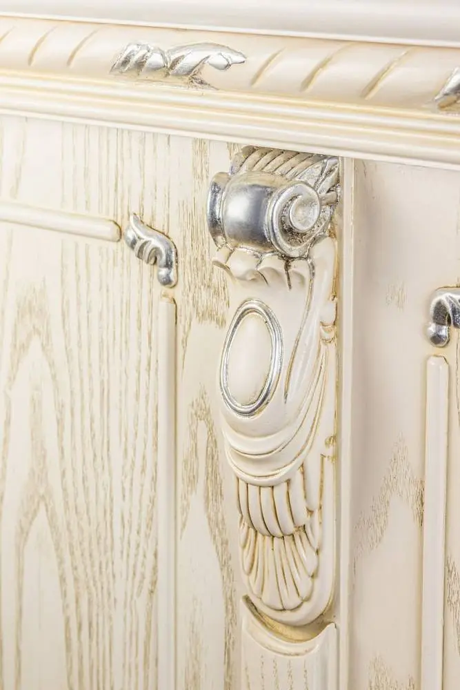 Коллекция Margaret создаст атмосферу благородства и роскоши в вашем доме. Стеклянные полки витрины обрамлены деревянной рамкой. Оснащена подсветкой, металлической балюстрадой. Облегченный доступ к внутреннему пространству. Витрина идеально подходит для зонирования помещения. Вся мебель коллекции выполнена из массива северной березы, в том числе скрытые элементы. Мебель из натурального дерева не выделяет вредных веществ и имеет долгий срок службы. Каждая деталь изделия вырезана вручную, а патина из натурального серебра и нежные изящные линии придают изделиям особенно элегантный и роскошный вид. Дно выдвижных ящиков покрыто бархатом, чтобы предметы не скользили. Коллекция Margaret исполняется в классическом стиле рококо по строгим итальянским технологиям. Разнообразие мебели поможет обустроить любые жилые квадратные метры: гостиную, столовую, кабинет, спальню. Качественная фурнитура DTC в цвете Античная бронза. Петли рассчитаны на 100 000 циклов открывания.