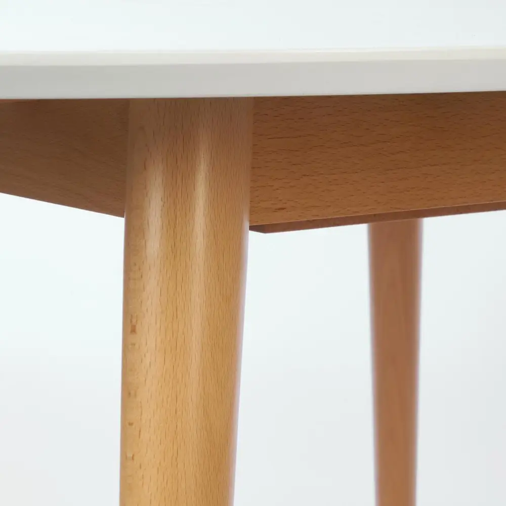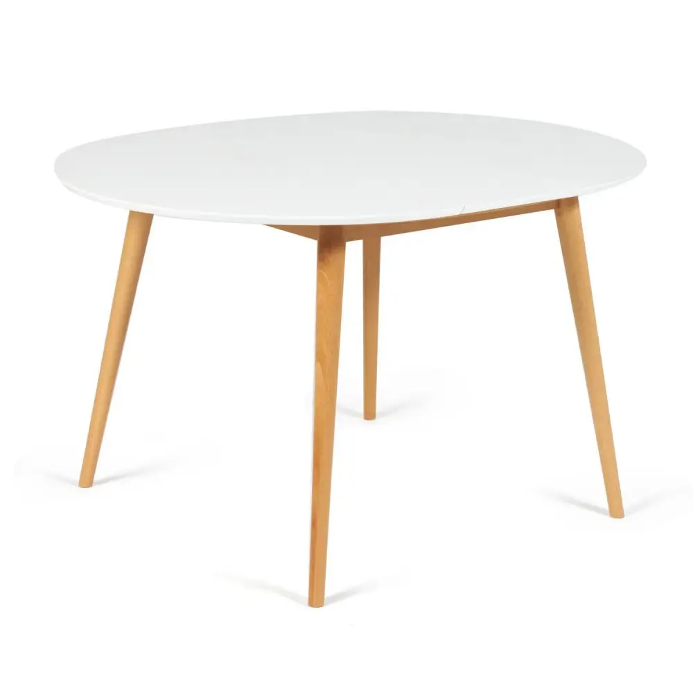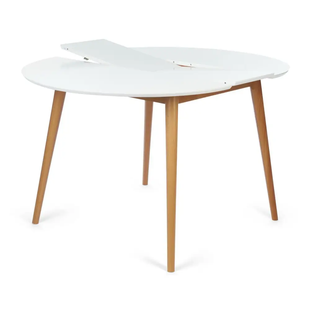 Стол круглый раскладной обеденный BOSCO (Боско) [основание бук, столешница мдф, , Белый+Натуральный. Размеры: 100х75х100(130) см.