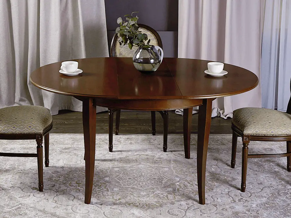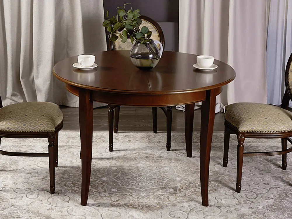 Стол обеденный, круглый раздвижной ГРАЦИЯ (1200-1560)х1200,шпон бука темный орех , без патины