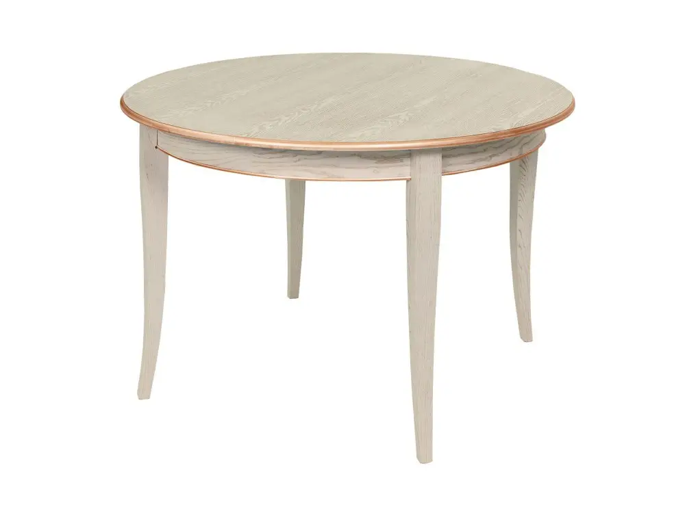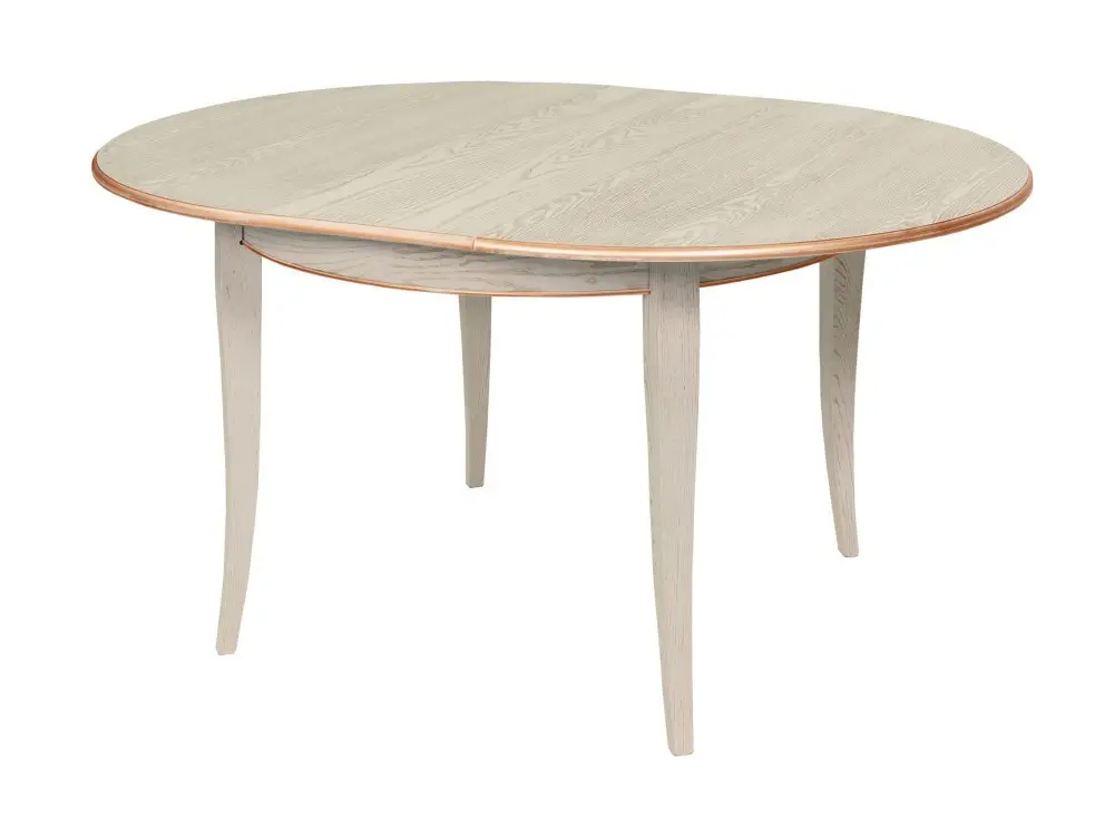 Стол обеденный, круглый раздвижной ГРАЦИЯ-2 (1200-1580)х1200, шпон дуба эмаль слоновая кость, патина бежевая