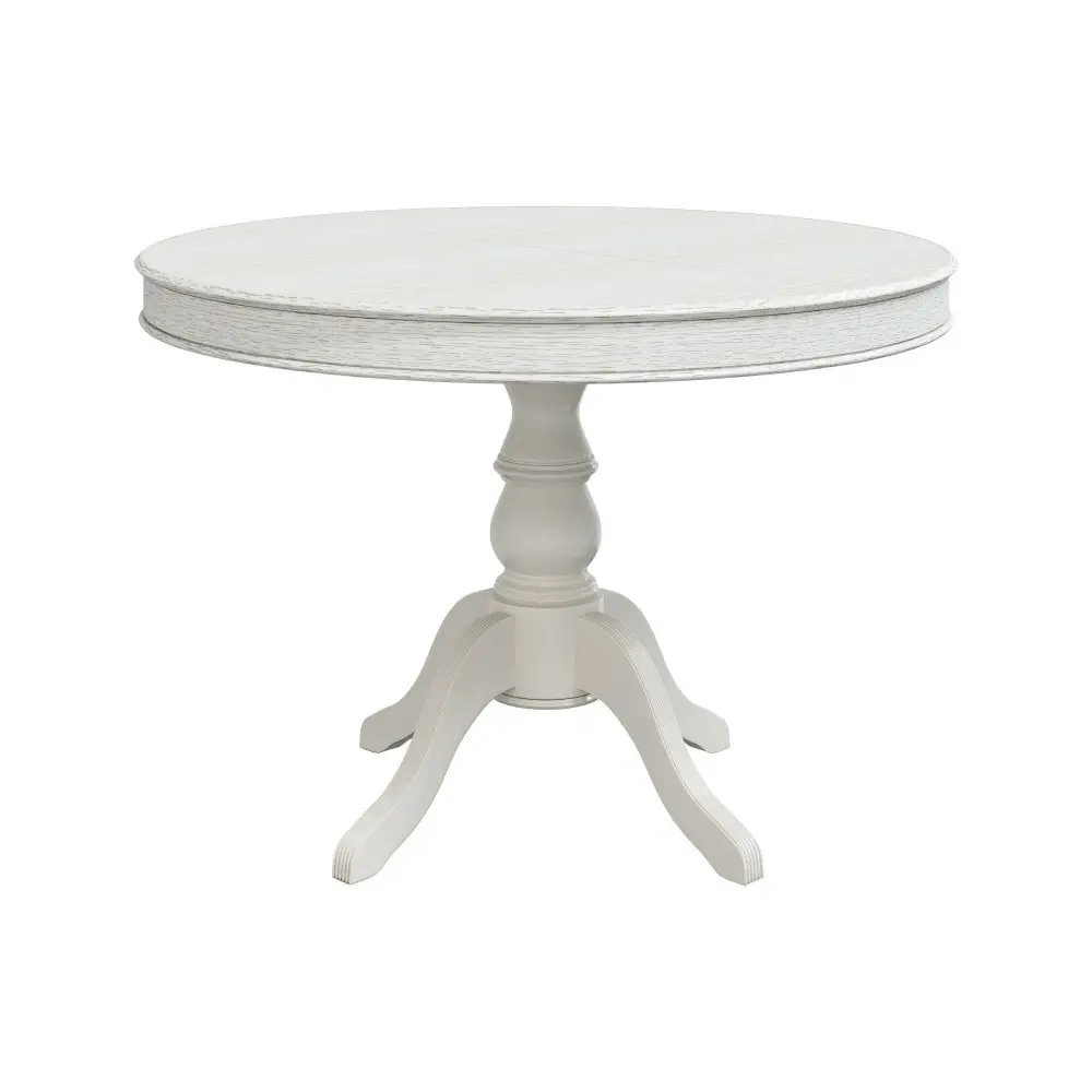 Стол обеденный, круглый раздвижной ПАТРИЦИЯ-2 (1000-1340)х1000, шпон дуба эмаль белая, патина белая