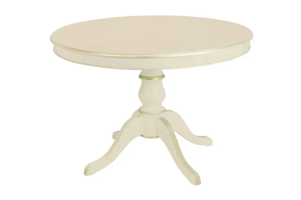 Стол обеденный, круглый раздвижной ПАТРИЦИЯ-2 (1000-1340)х1000, шпон дуба эмаль панна, патина золото