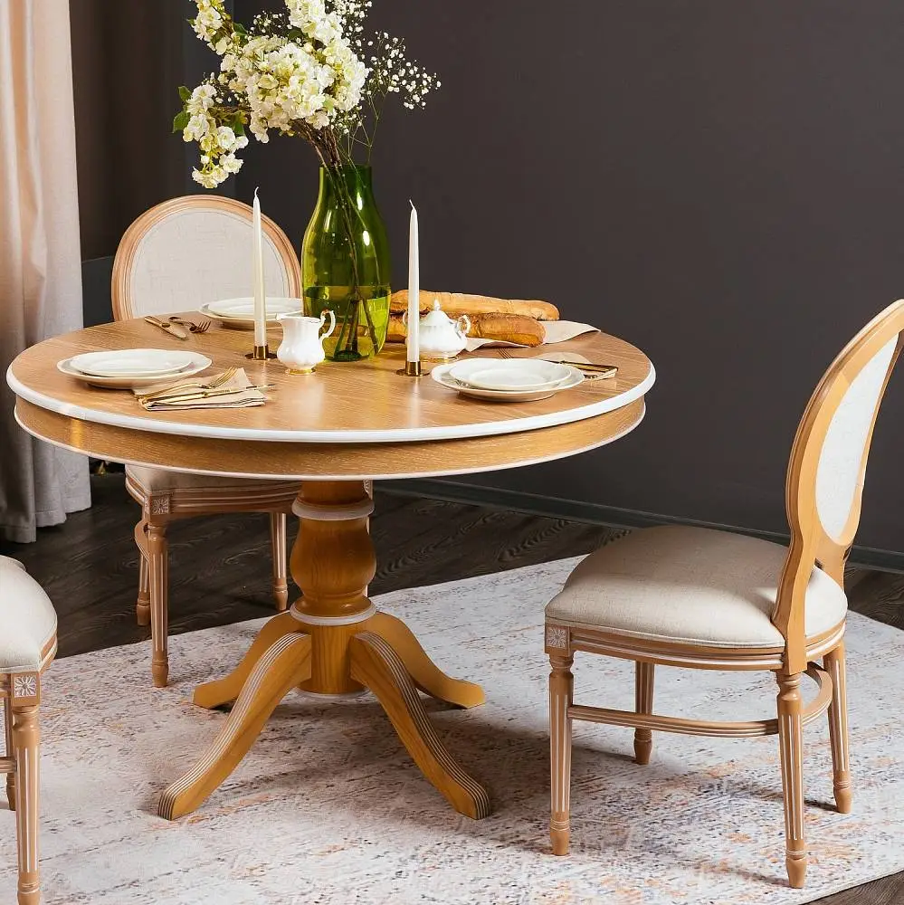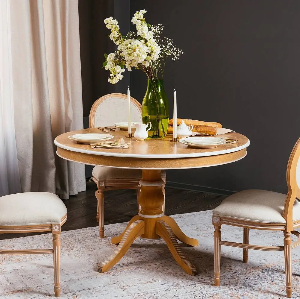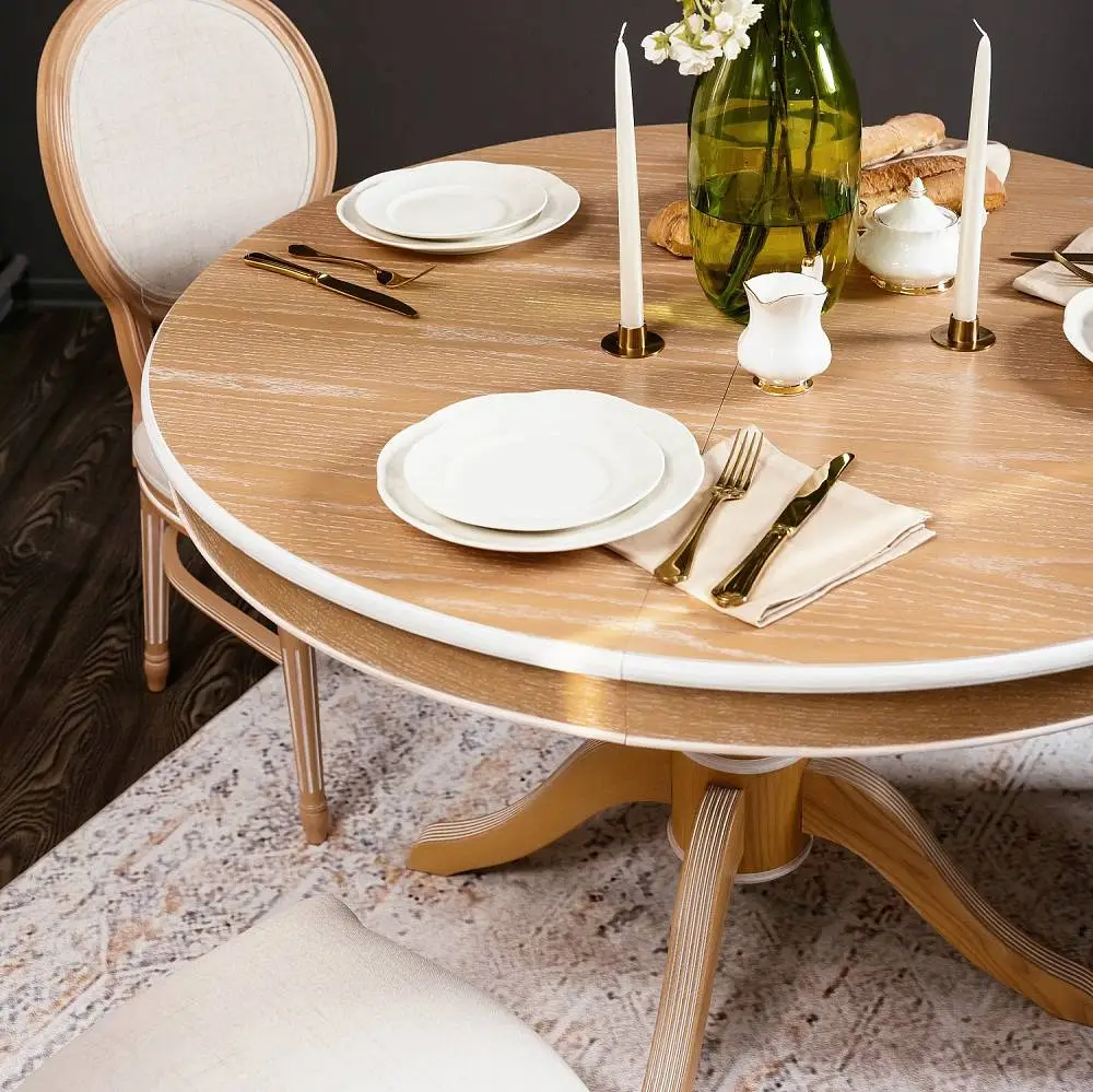 Стол обеденный, круглый раздвижной ПАТРИЦИЯ-2 (1000-1340)х1000, шпон дуба тон натуральное дерево, патина белая