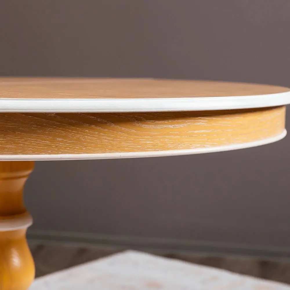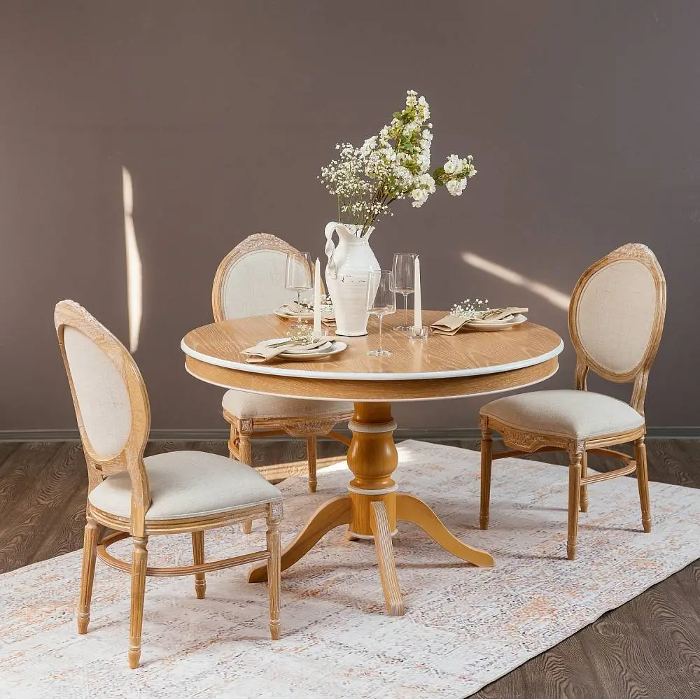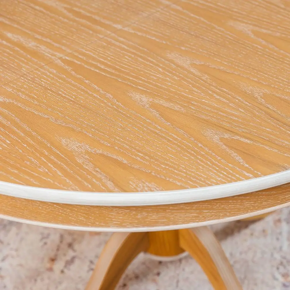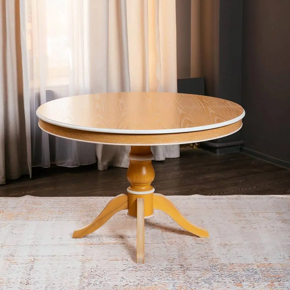 Стол обеденный, круглый раздвижной ПАТРИЦИЯ-2 (1000-1340)х1000, шпон дуба тон натуральное дерево, патина белая