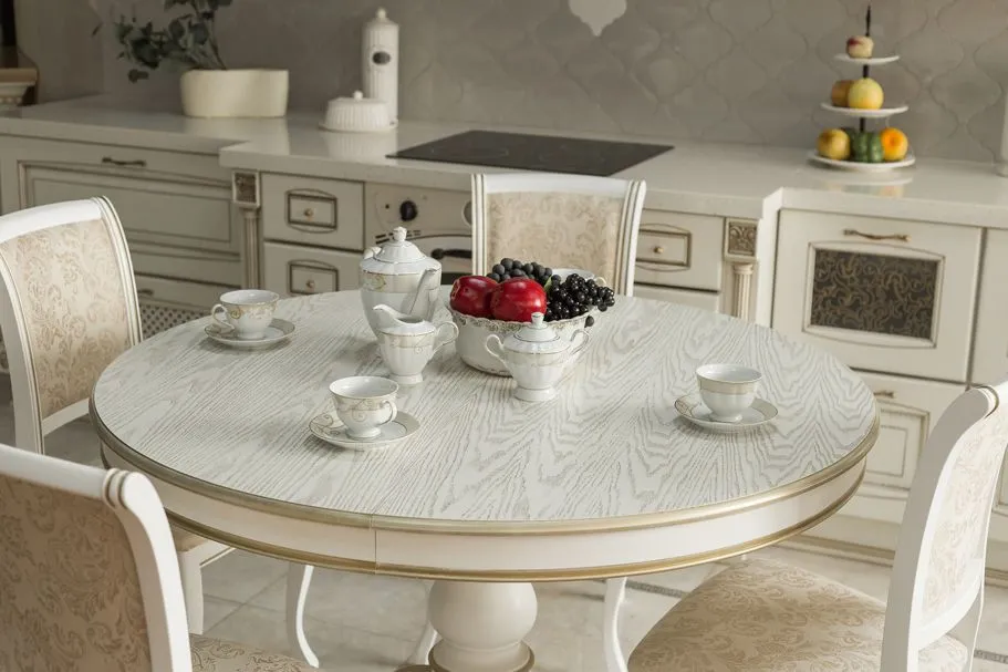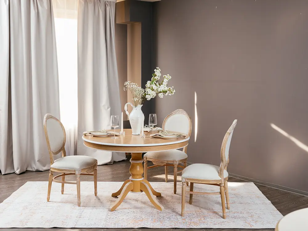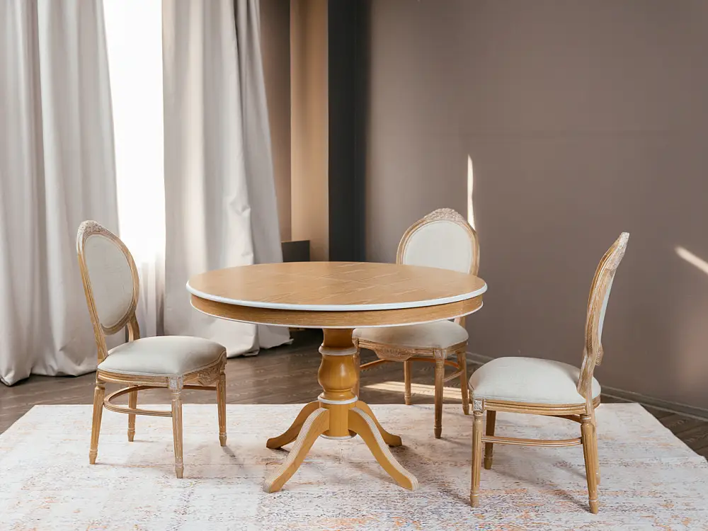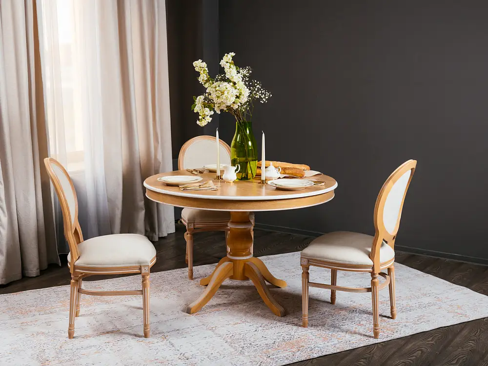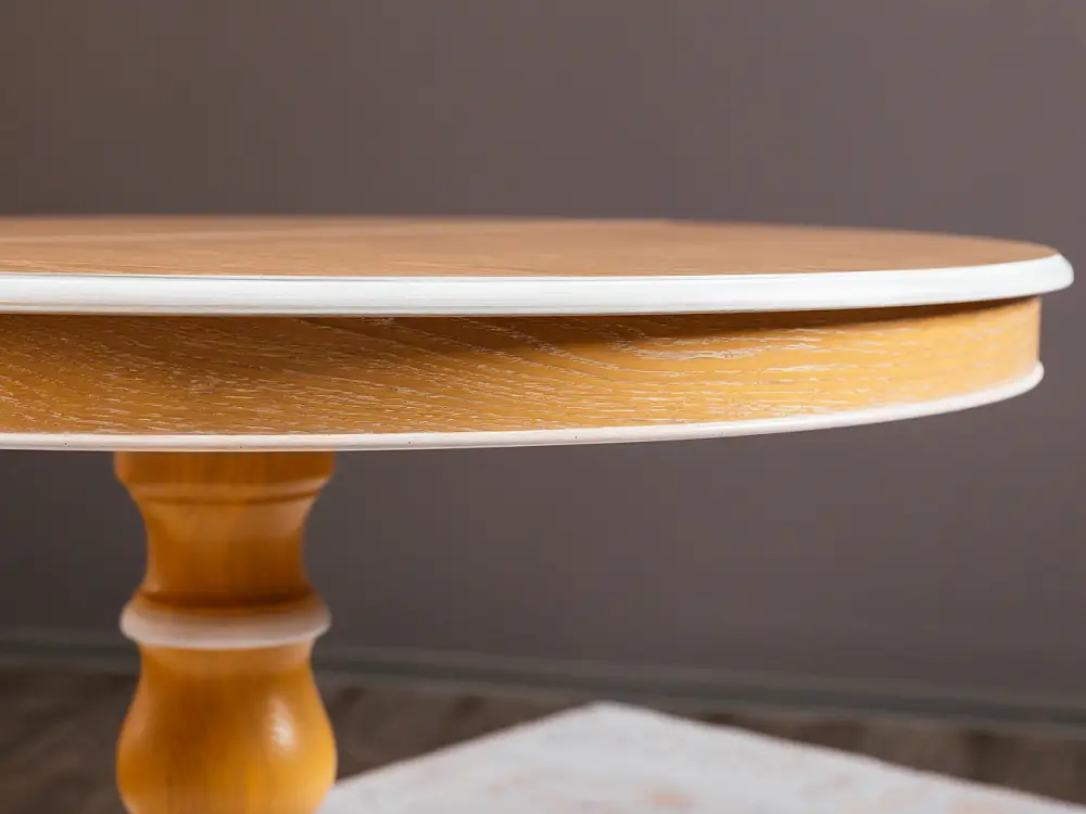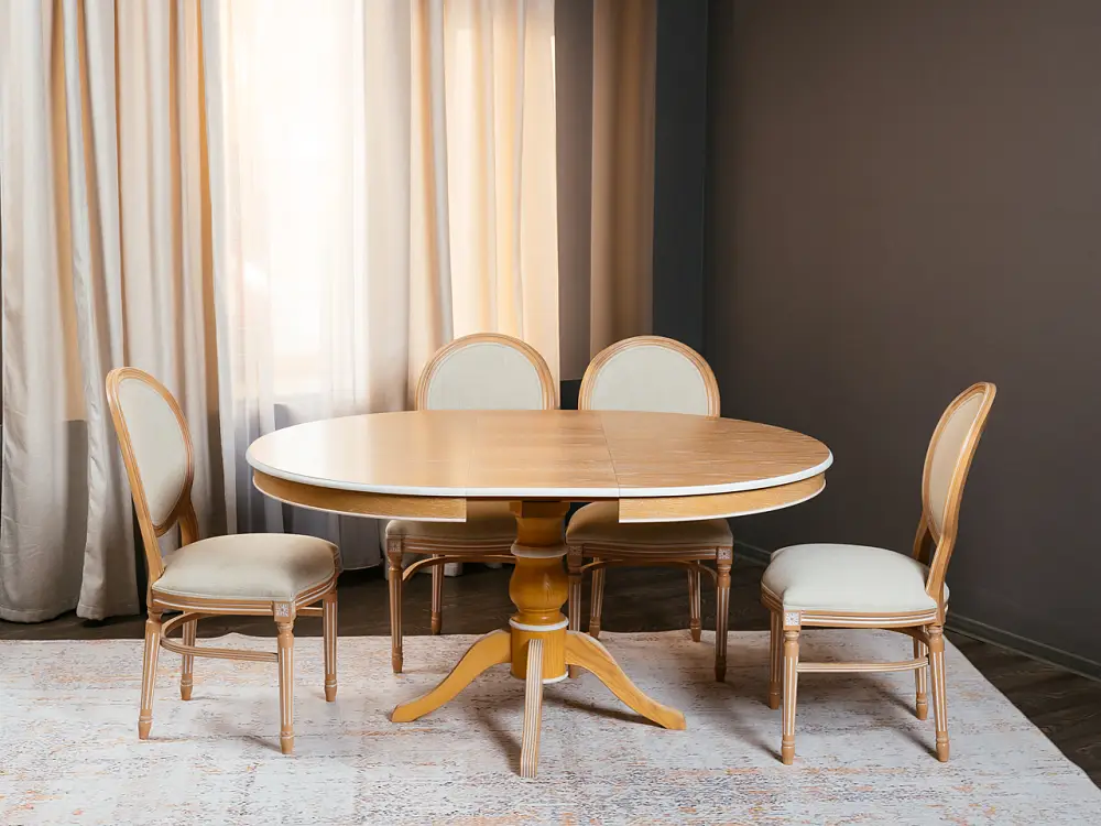 Стол обеденный, круглый раздвижной ПАТРИЦИЯ-2 (1200-1560)х1200,шпон дуба тон натуральное дерево , патина белая