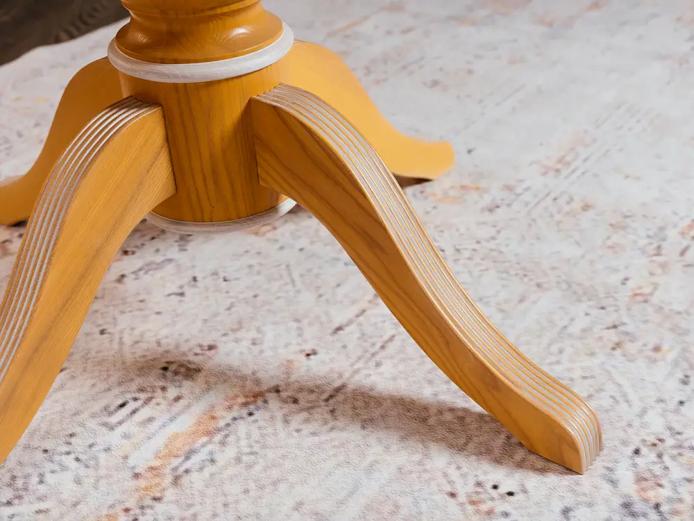 Стол ПАТРИЦИЯ-2 – это яркий образец классического итальянского дизайна. Круглая столешница с на элегантной точёной ножке является оптимальной конструкцией по своей эргономике. Стол можно разложить и сделать его овальным, и не переживать, если к вам пришли гости и их больше, чем вы планировали. Нога-опора стола и край столешницы выполнены из массива бука. Лепестки-опоры дополнительно декорированы фрезеровкой-гребенкой и патиной, что подчеркивает элегантность форм. Поверхность столешницы покрыта шпона дуба, текстуру которого также подчеркивает патина.