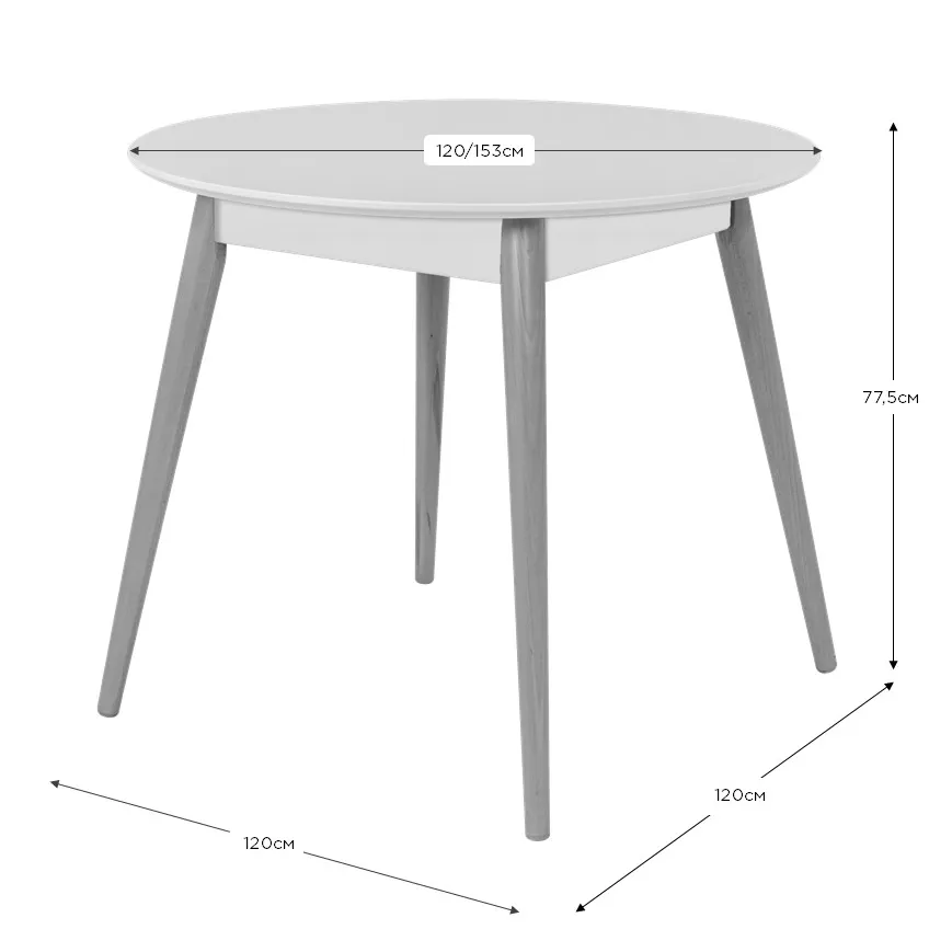 Стол обеденный, круглый раздвижной SEDUM (1200-1540)х1200, эмаль эмаль белая