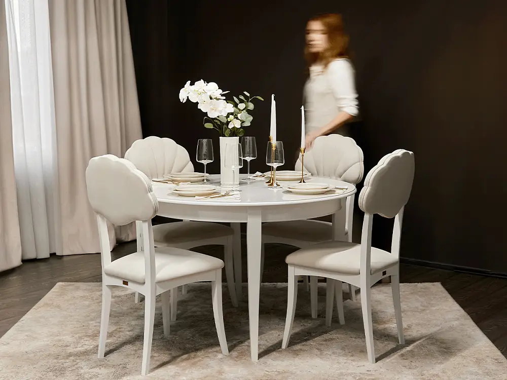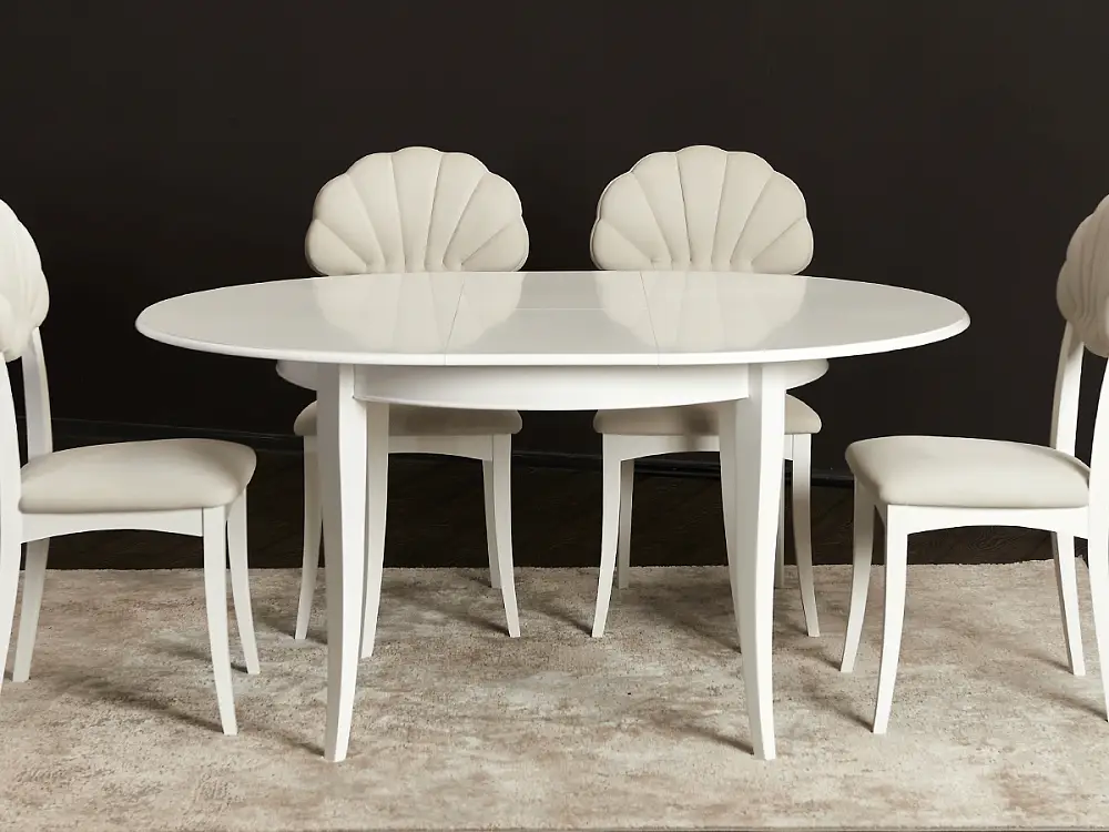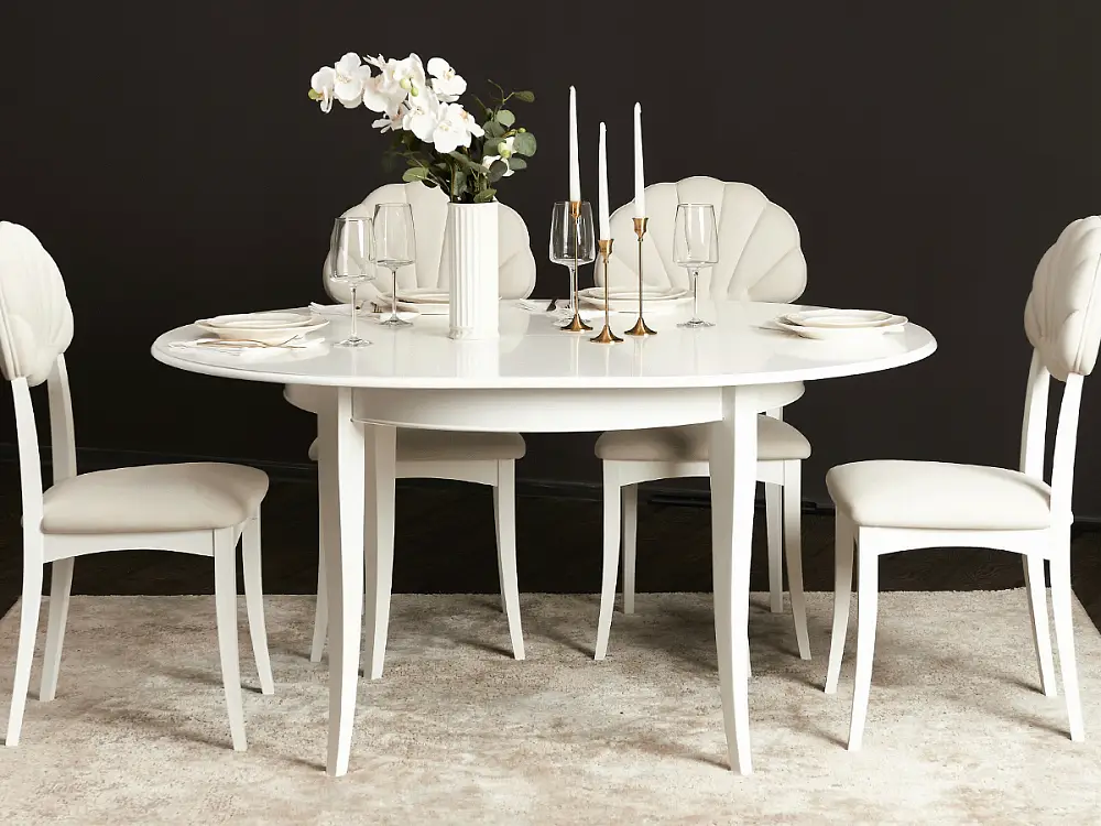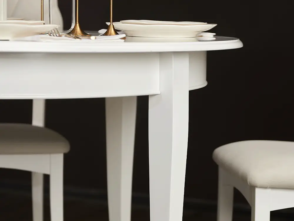 Стол обеденный, круглый раздвижной ВИКТОРИЯ (1200-1560)х1200,МДФ окрашен эмалью эмаль белая , без патины