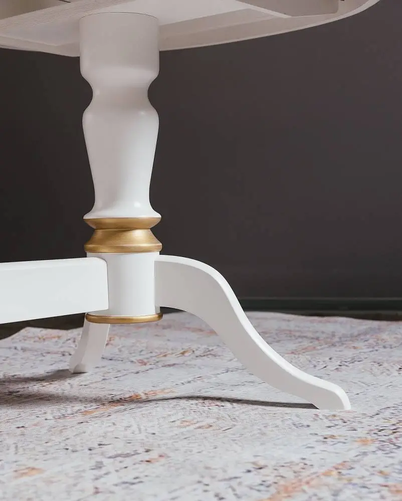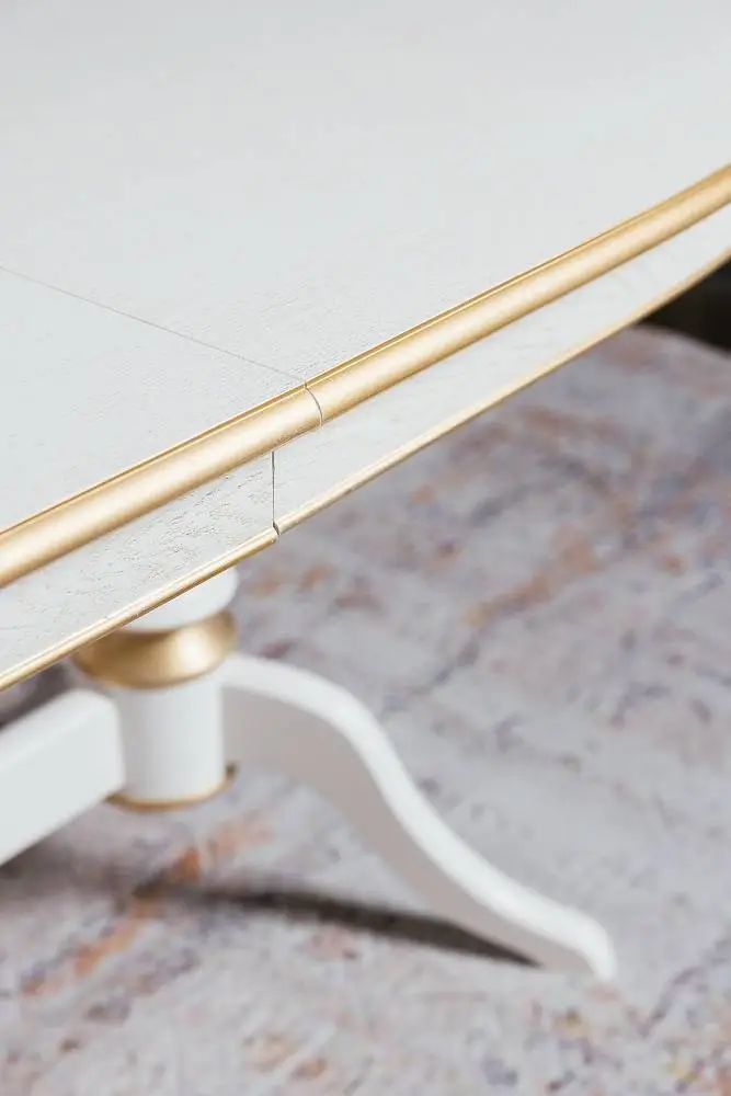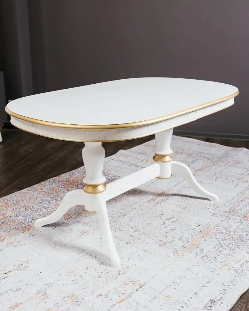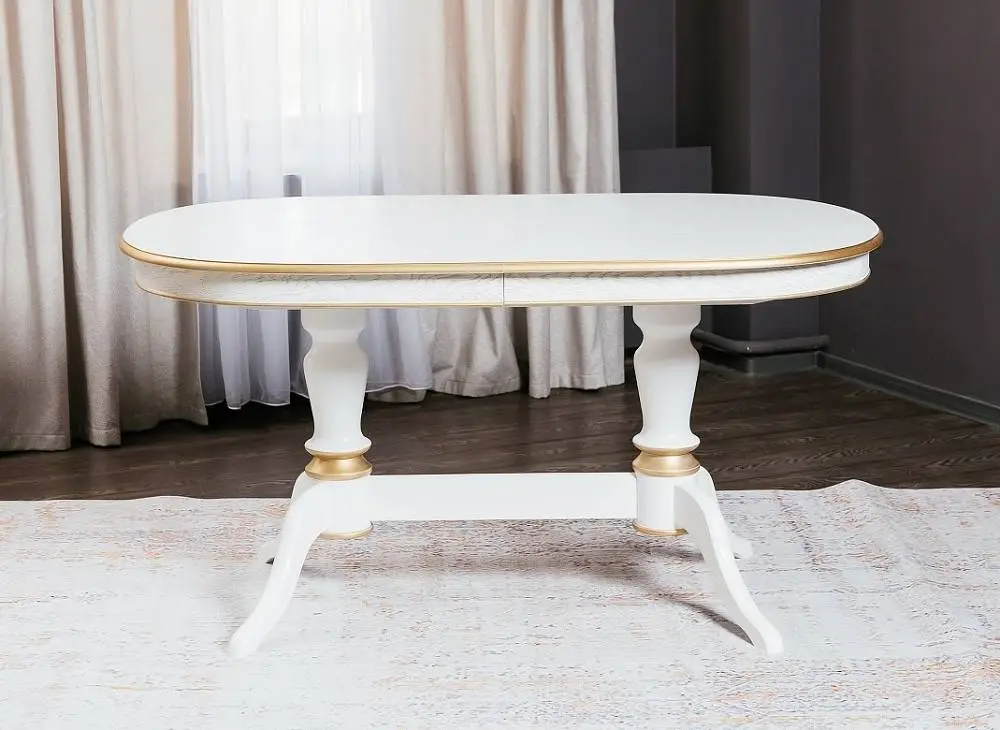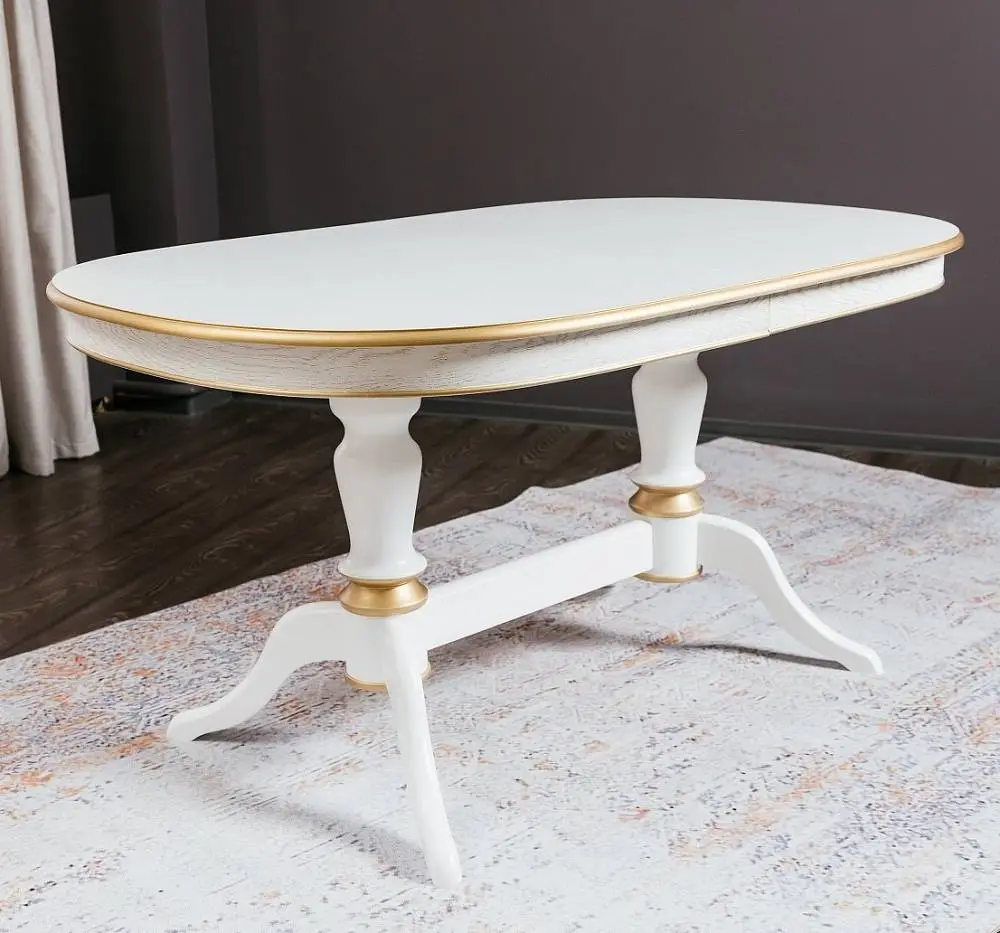 Стол обеденный раздвижной СОФИЯ-3 (1500-2380)х960, шпон дуба эмаль белая, патина золото