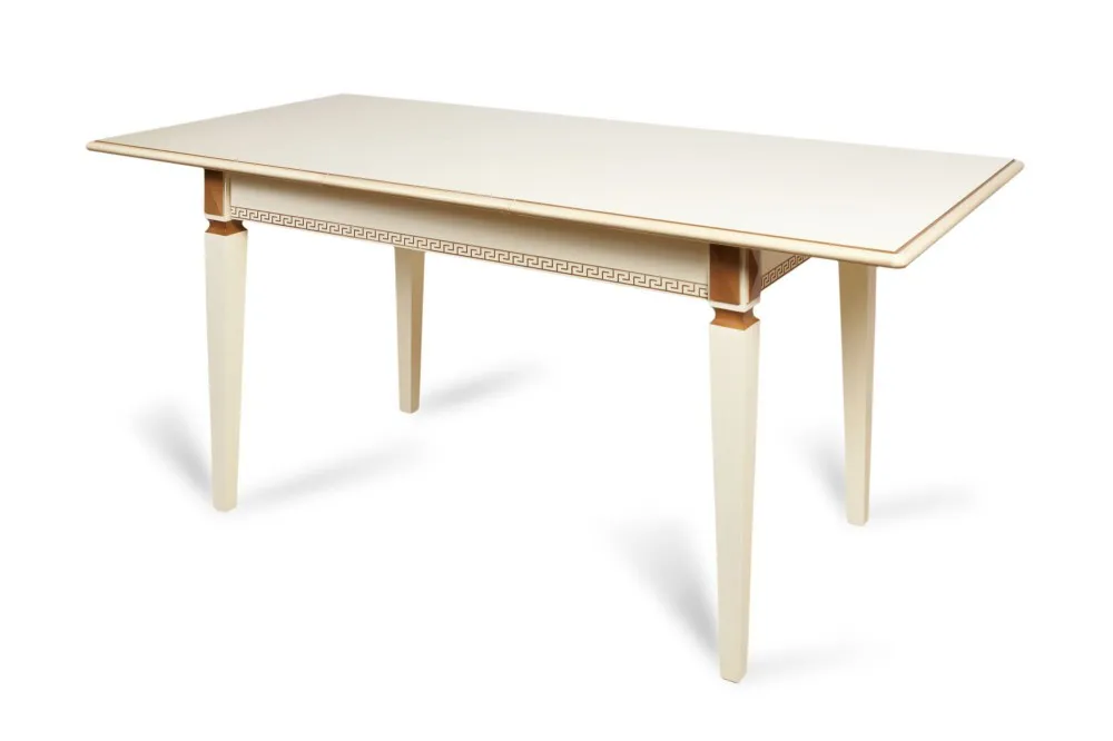 Стол Валерия выполнен в классическом стиле. Форма и размер столешницы эргономичны и универсальны, что делает стол Валерия незаменимым для любой кухни, кухни-гостиной или столовой. При этом стол раскладной, что позволяет разместить гостей. Подстолье декорировано рельефным классическим греческим орнаментом, на ножках стола присутствуют декоративные элементы. Стол может быть выполнен с нанесением патины, что подчёркивает его элегантные формы. Опора столешницы на четыре ножки – является самой высоконадёжной конструкцией.