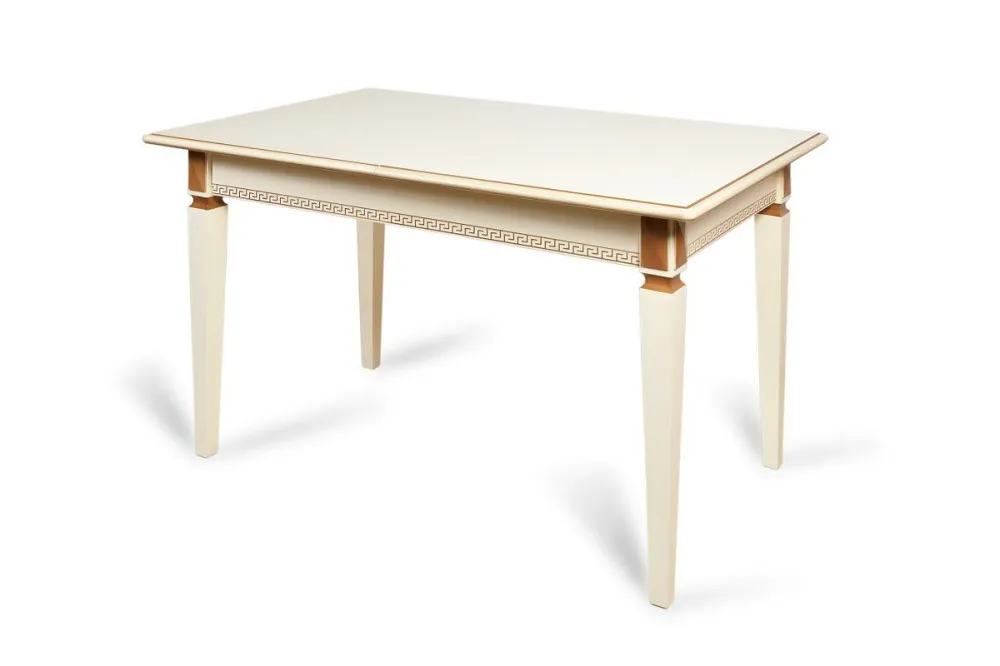 Стол обеденный раздвижной ВАЛЕРИЯ (1200-1560)х700, эмаль эмаль панна, патина бежевая