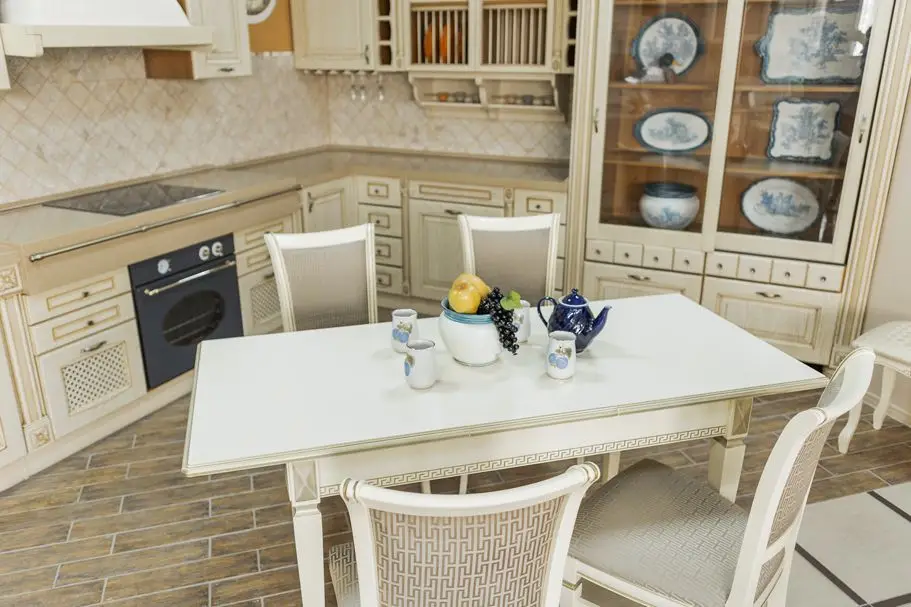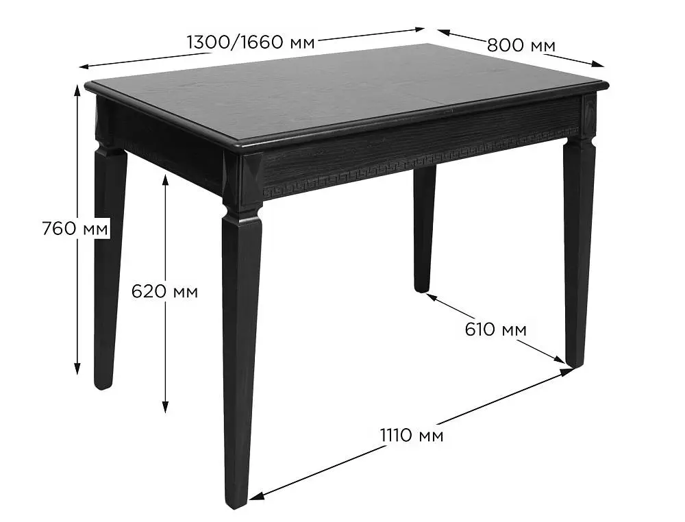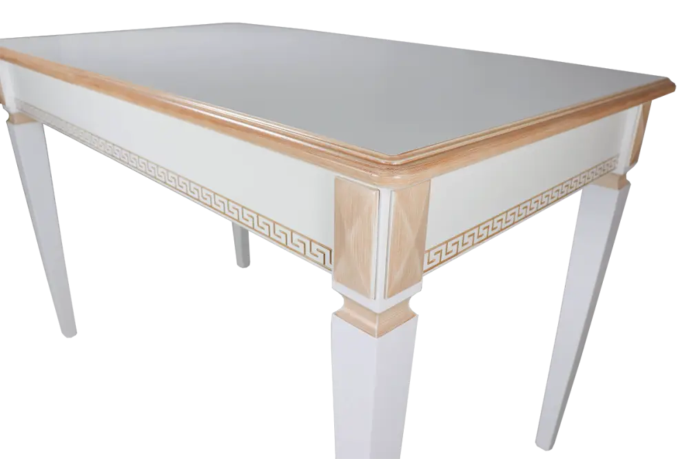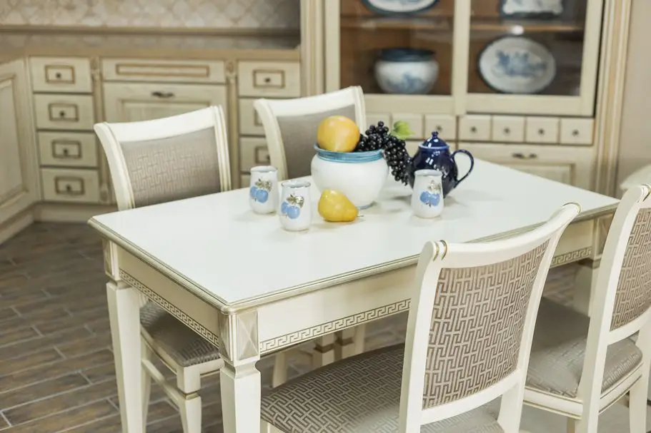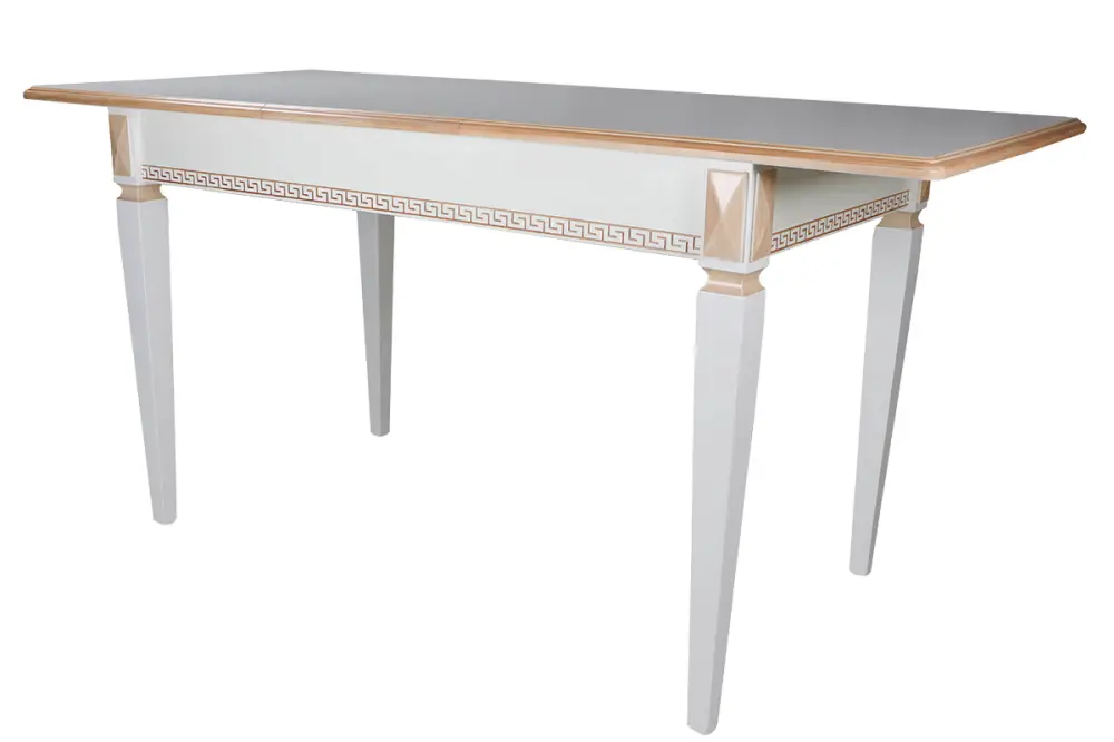 Стол Валерия выполнен в классическом стиле. Форма и размер столешницы эргономичны и универсальны, что делает стол Валерия незаменимым для любой кухни, кухни-гостиной или столовой. При этом стол раскладной, что позволяет разместить гостей. Подстолье декорировано рельефным классическим греческим орнаментом, на ножках стола присутствуют декоративные элементы. Стол может быть выполнен с нанесением патины, что подчёркивает его элегантные формы. Опора столешницы на четыре ножки – является самой высоконадёжной конструкцией.