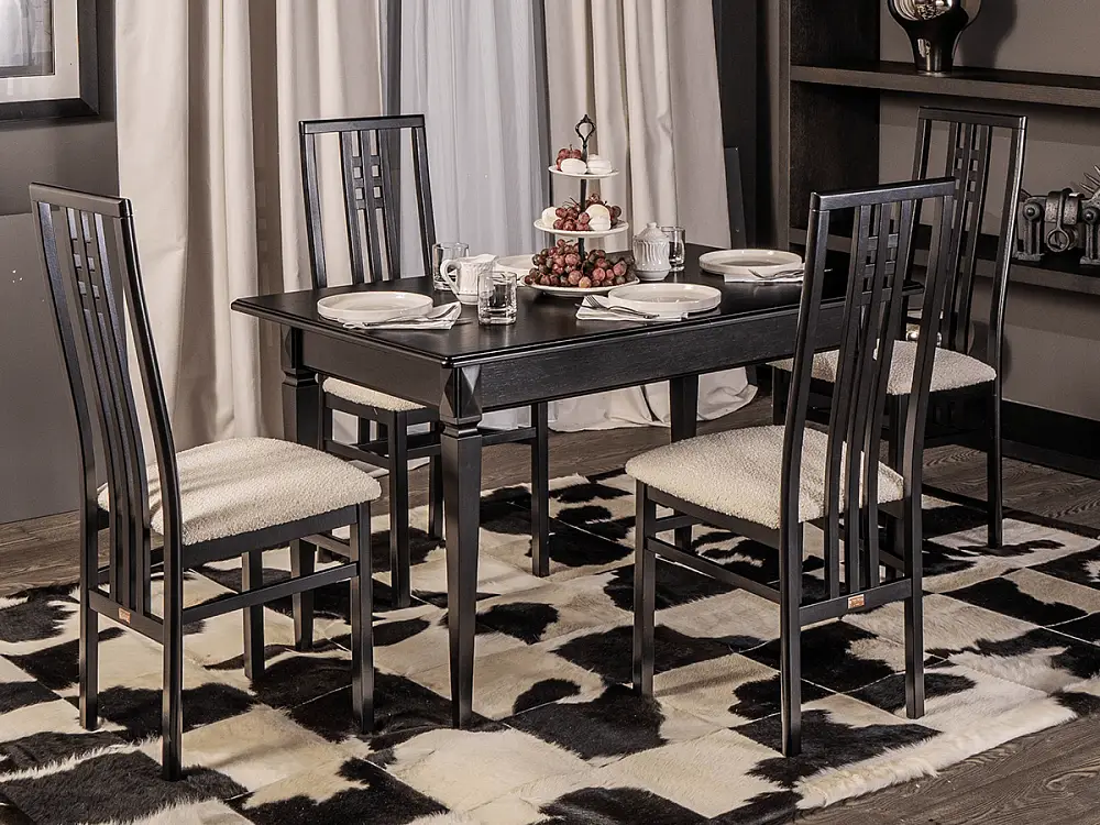 Стол Валерия выполнен в классическом стиле. Форма и размер столешницы эргономичны и универсальны, что делает стол Валерия незаменимым для любой кухни, кухни-гостиной или столовой. Столешница выполнена из шпона, материал ножек – массив бука. На ножках стола присутствуют декоративные элементы. Опора столешницы на четыре ножки является самой высоконадёжной конструкцией.