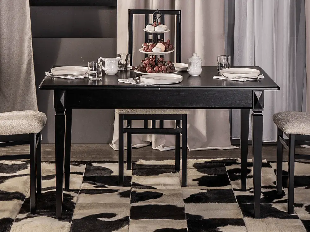 Стол обеденный раздвижной ВАЛЕРИЯ (1300-1660)х800,шпон фанлайн тон черный , без патины