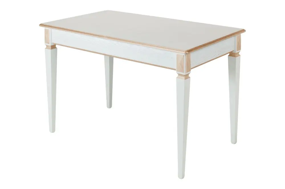 Стол обеденный раздвижной ВАЛЕРИЯ-2 (1200-1560)х700, шпон дуба эмаль белая, патина бежевая