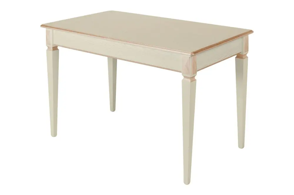 Стол обеденный раздвижной ВАЛЕРИЯ-2 (1200-1560)х700, шпон дуба эмаль слоновая кость, патина бежевая