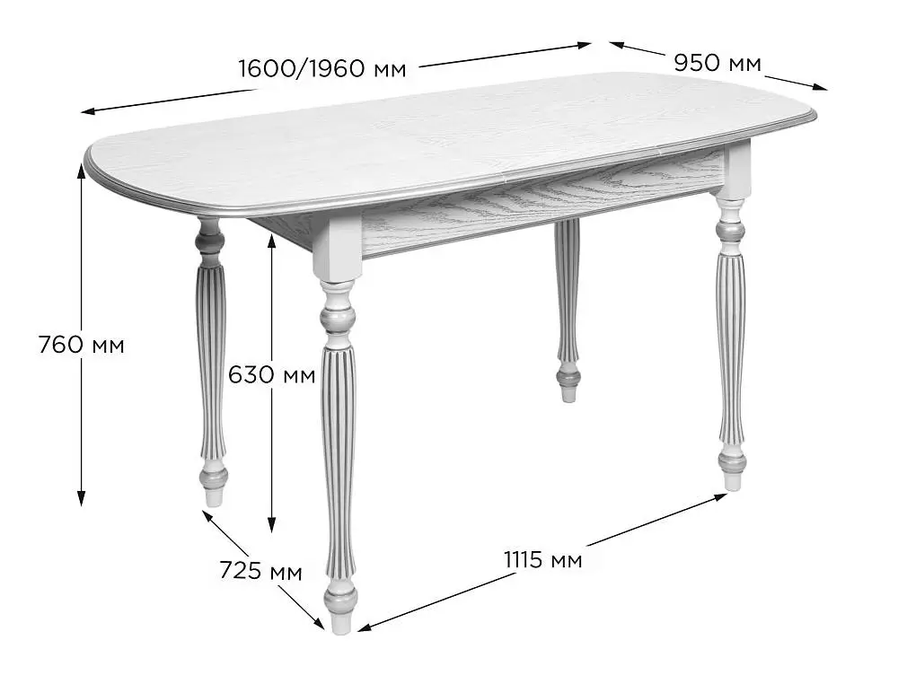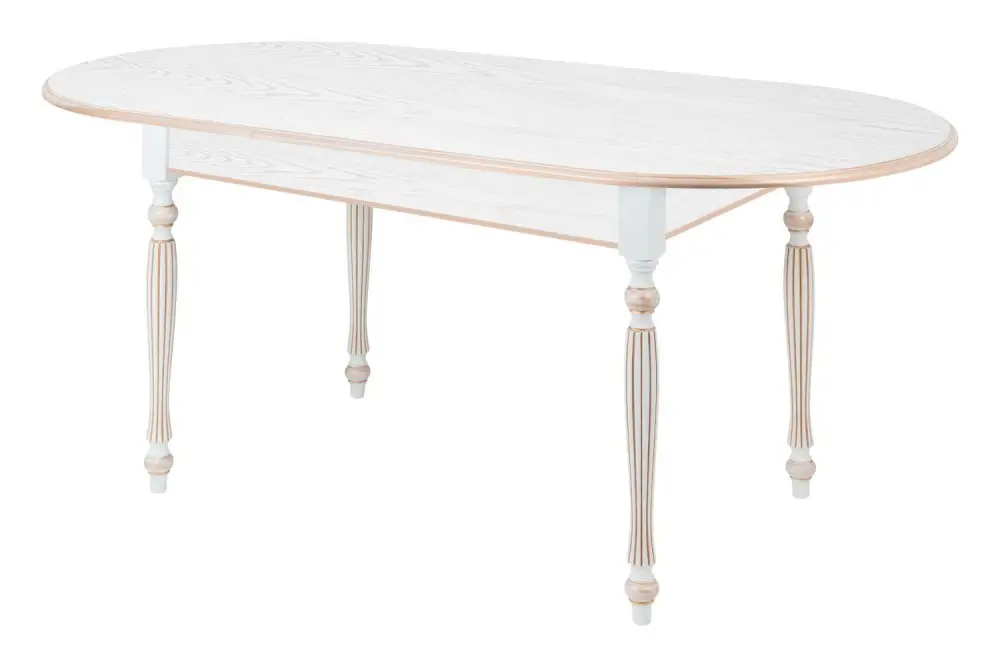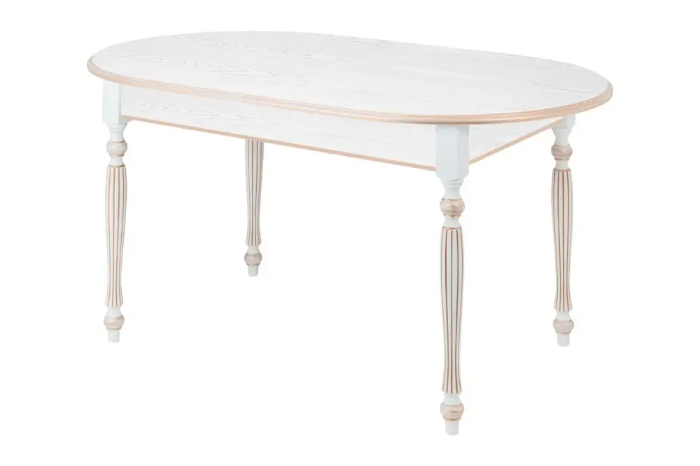 Стол обеденный раздвижной ВЕРОНА-2 (1600-1960)х950, шпон дуба эмаль белая, патина бежевая