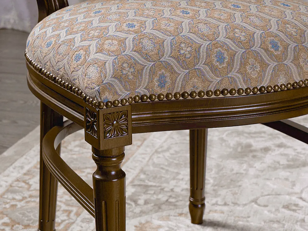 Стул Астория изготовлен из массива бука, его дизайн является традиционным классическим, каждый штрих и элемент декора продиктован традициями, подтвержденными на протяжении не одного столетия. Патина элегантно подчёркивает совершенство линий и декоративных элементов стула.