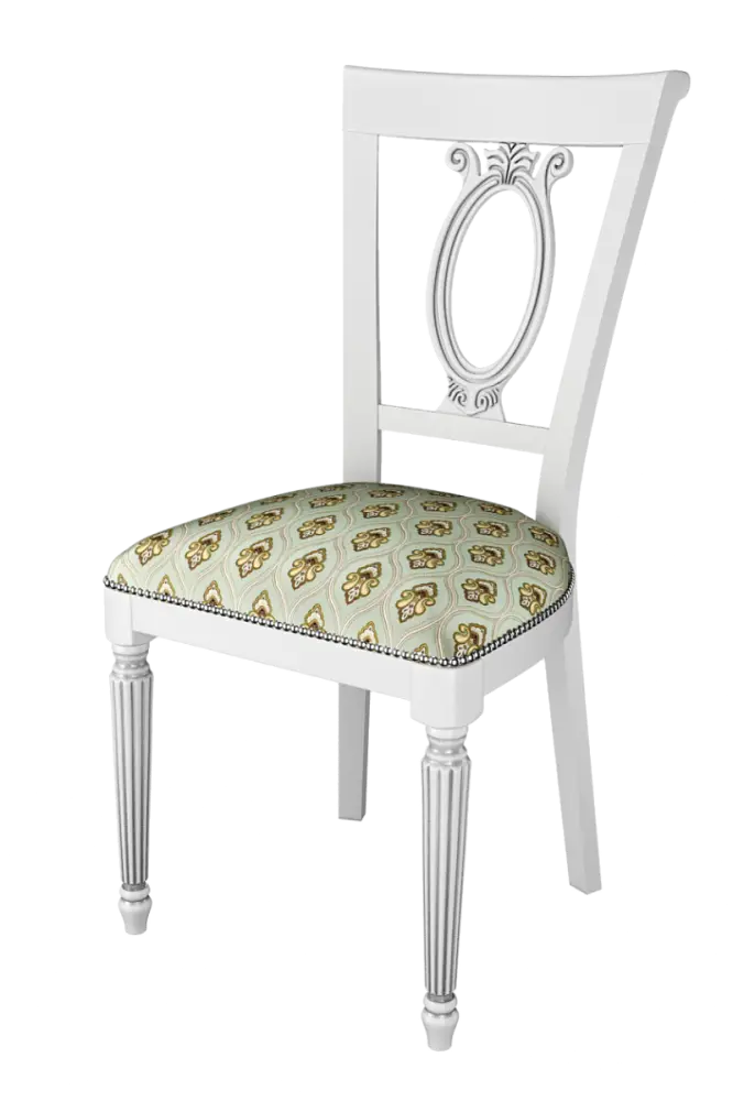 Стул деревянный ЛОЛА, массив бука, эмаль белая, патина серебро, светло-cеро-зеленый