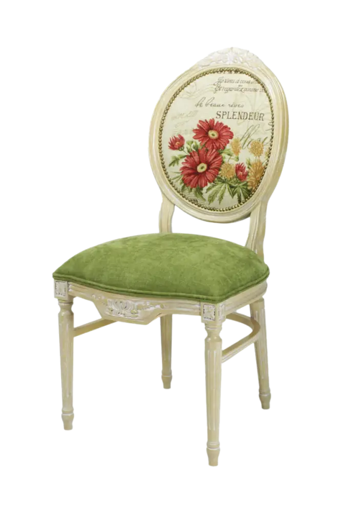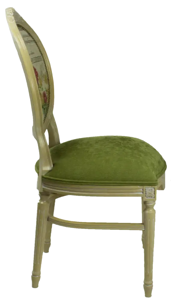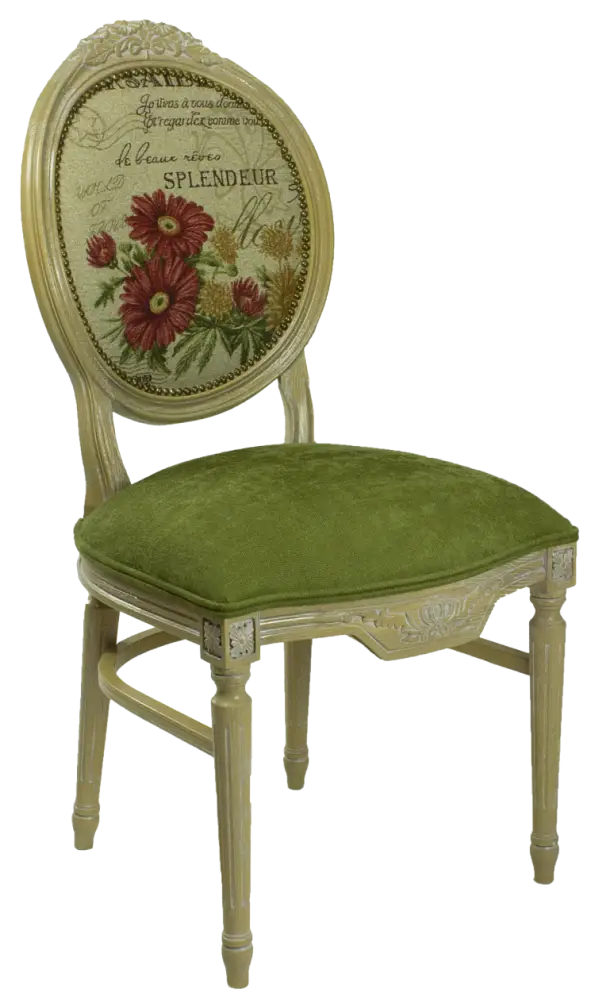 Стул деревянный ВЕНЕЦИЯ, массив дуба, тон натуральное дерево, патина белая, зеленый