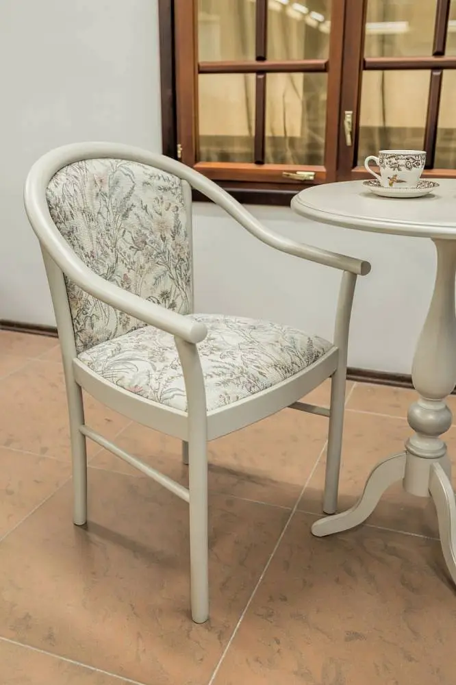 Стул с подлокотниками АННА изготовлен из массива бука. Он максимально комфортный, а его мягкие формы создают настроение безмятежности и гармонии в интерьере. Подходит для любых целей и помещений - может быть и в гостиной, детской, в спальне перед туалетным столиком, либо в кабинете. Стул подойдёт даже любителям фен Шуя, поскольку в нём нет ни одного прямого или острого внешнего угла. Подлокотники являются частью спинки, обеспечат максимально удобство. Стул с подлокотниками АННА собирается по классической технологии путем склеивания деталей методом "шип-проушина", который гарантирует надежность и долговечность изделия. Под сиденьем встроены дополнительные царги, усиливающие каркас.