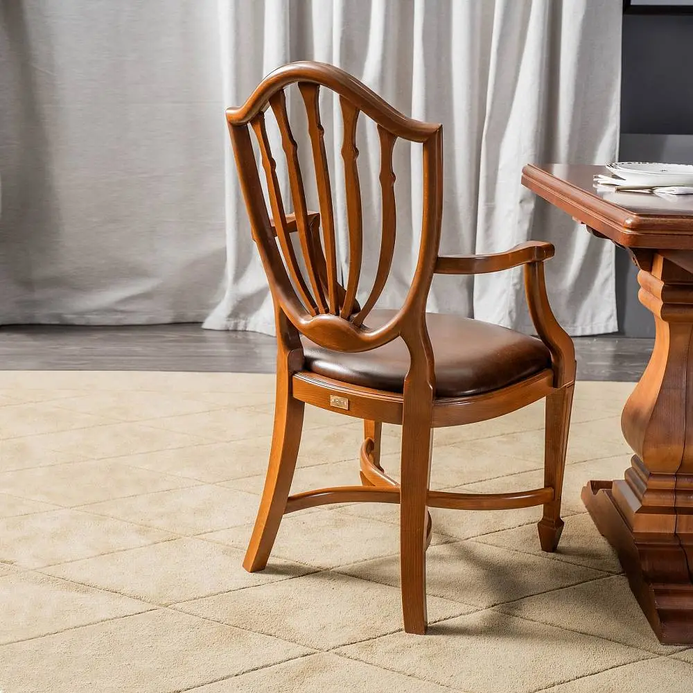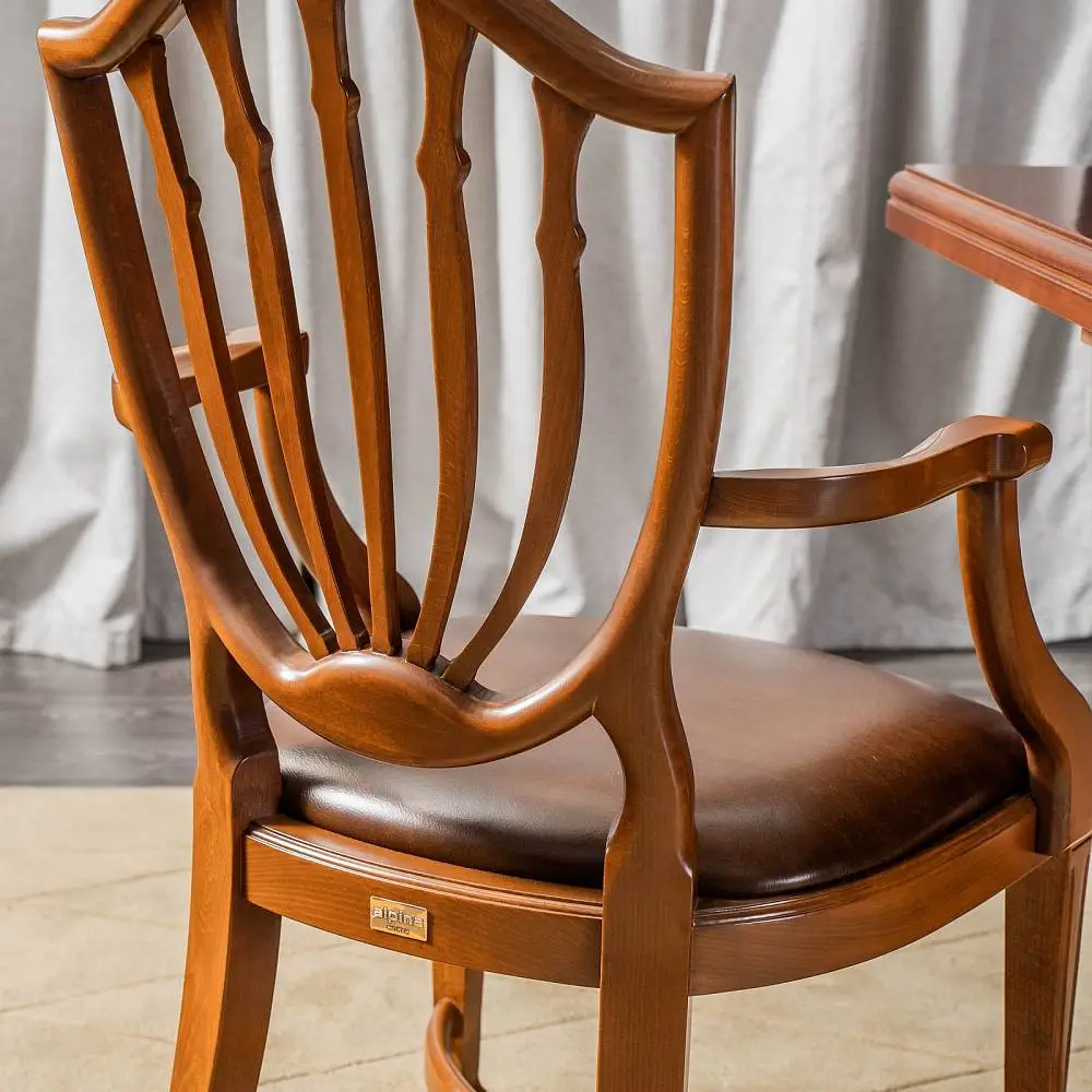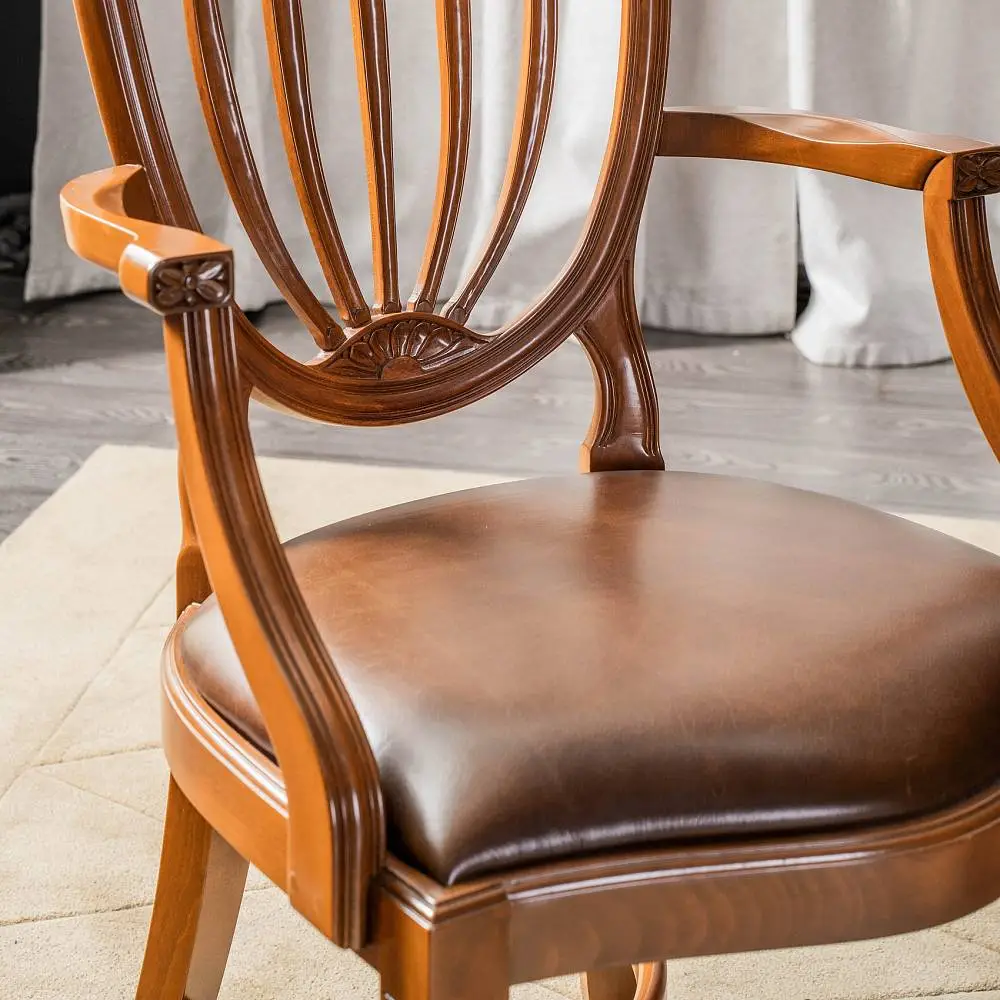 Дизайн стула Элизабет является репликой знаменитого Английского дизайнера мебели восемнадцатого века Георга Хепплуайта. Стул Элизабет – олицетворение настоящей Английской классики, которая вместила в себя многовековые традиции мебельных мастеров, максимальное удобство и по-настоящему королевский дизайн. Высокая спинка и широкое сиденье стула обеспечат комфорт, под сиденьем выполнены перекрещивающиеся проножки, что делает конструкцию добротной и долговечной. Стул Элизабет выполнен из массива белого бука, этот материал всемирно признан лучшим для создания мебели. Древесина бука имеет высокую твердость и легка в обработке, что позволяет делать из бука красивые и долговечные стулья.