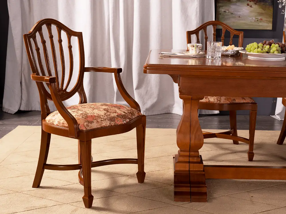 Дизайн стула Элизабет является репликой знаменитого Английского дизайнера мебели восемнадцатого века Георга Хепплуайта. Стул Элизабет – олицетворение настоящей Английской классики, которая вместила в себя многовековые традиции мебельных мастеров, максимальное удобство и по-настоящему королевский дизайн. Высокая спинка и широкое сиденье стула обеспечат комфорт, под сиденьем выполнены перекрещивающиеся проножки, что делает конструкцию добротной и долговечной. Стул Элизабет выполнен из массива белого бука, этот материал всемирно признан лучшим для создания мебели. Древесина бука имеет высокую твердость и легка в обработке, что позволяет делать из бука красивые и долговечные стулья.