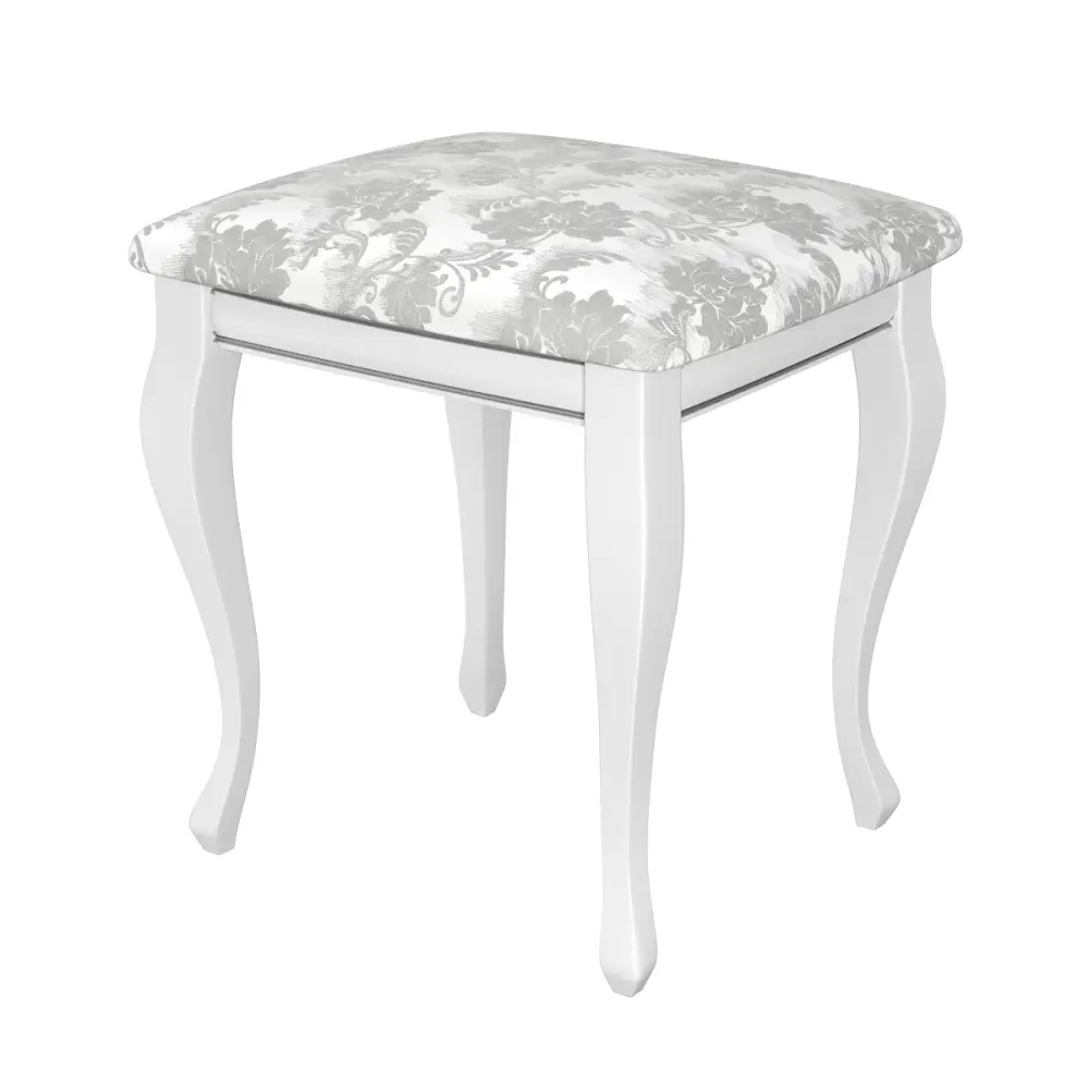 Табурет Румба массив бука, с мягким сиденьем эмаль белая, патина серебро, серебристый