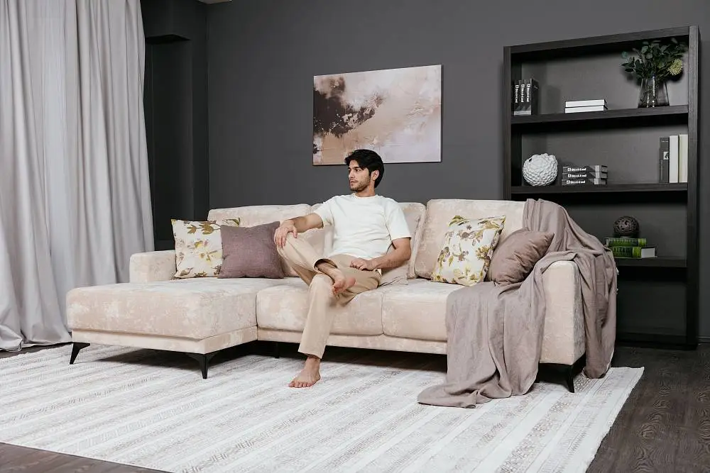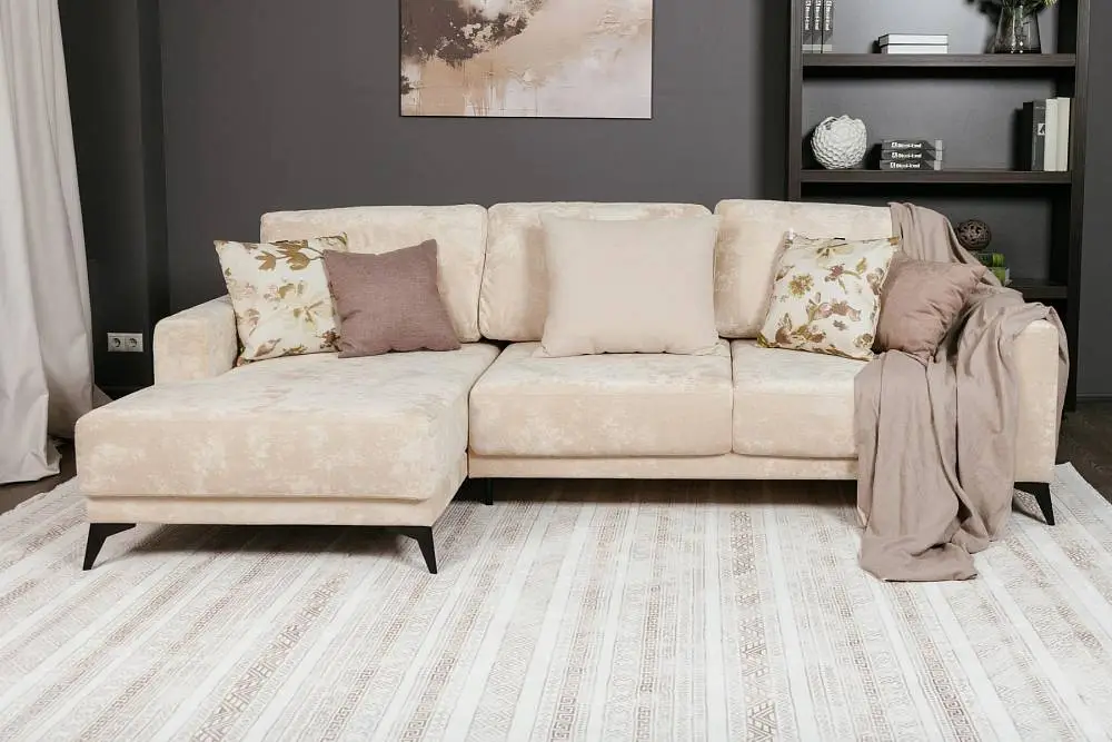 Диван НАОМИ c оттоманкой, 3250х7470х1550 молочный