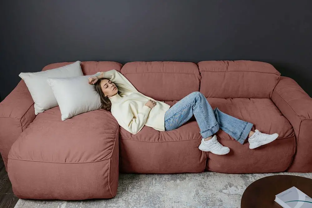 Наполнение дивана создано по специальной формуле, сочетающей в себе поролон, синтепон, синтепух и холлофайбер, благодаря которой диван не потеряет форму на протяжении долгих лет и будет оставаться таким же воздушным и мягким. Сочетание таких наполнителей также подстраивается под форму тела, за счет чего сидеть на диване максимально комфортно.