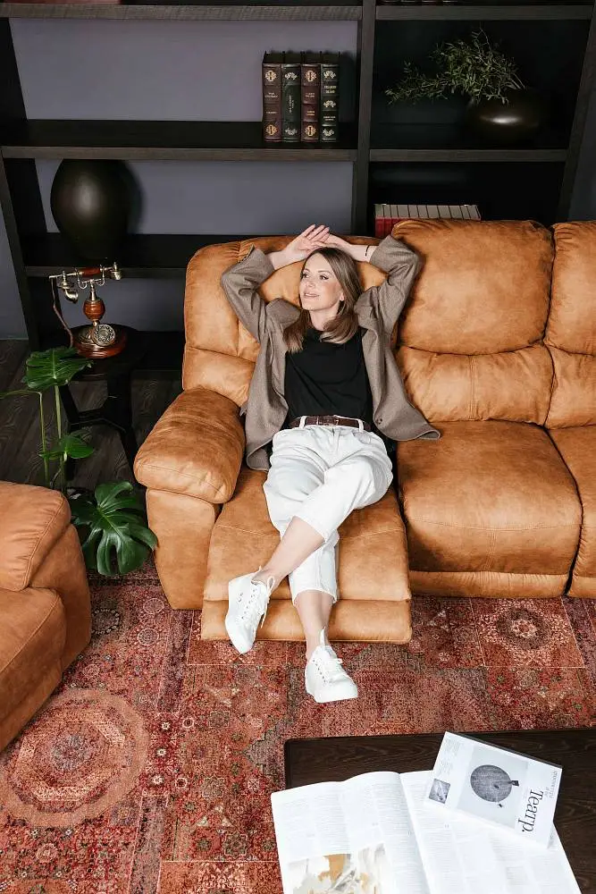 Диван трехместный с реклайнером можно разместить как в просторной гостиной, так и в загородном доме, а универсальный дизайн подойдет большинству интерьеров, как лофт, так и современным классическим интерьерам.