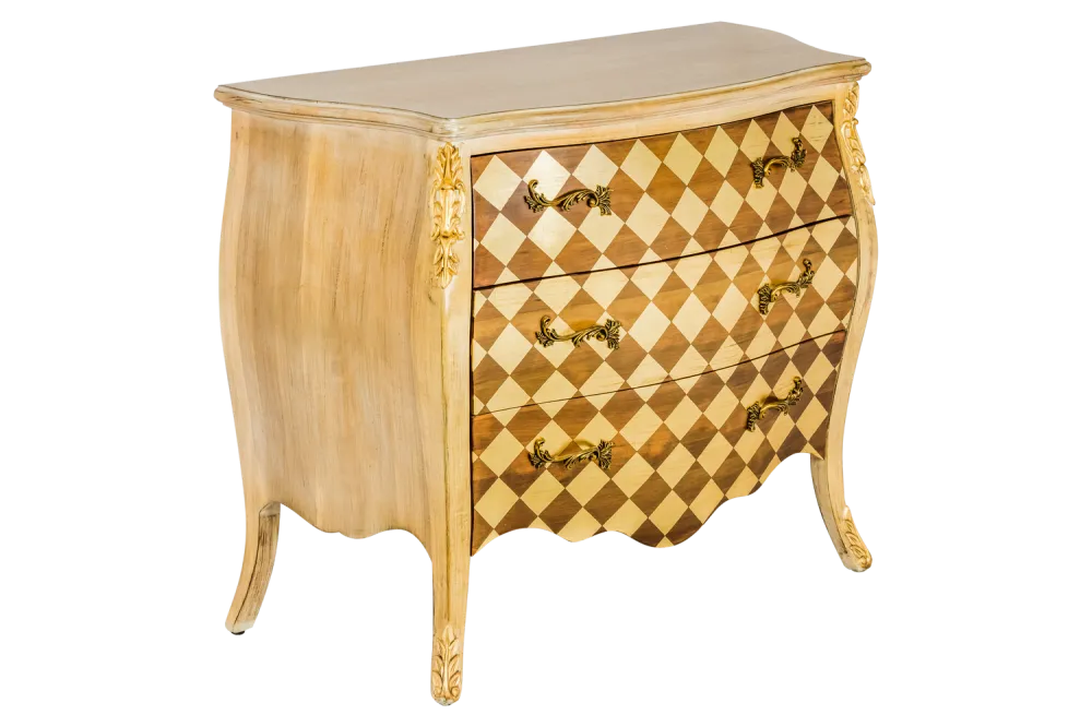 Комод Angel выполнен из натуральных материалов, это респектабельная, эстетичная и торжественная мебель, с эффектным и запоминающимся дизайном, станет богатым и почетным украшением домашнего интерьера, наполнив его уютом, роскошью и практичностью. Несмотря на то, что сейчас более популярен современный стиль такой комод станет оригинальным решением. Эта высококачественная, уникальная и эксклюзивная мебель обладает элитной внешностью и элегантным дизайном. Модель имеет изящные формы. Фурнитура европейского качества, выдвижные ящики выдержат нагрузку более 10кг. Мебель не выделяет вредных веществ и имеет долгий срок службы.