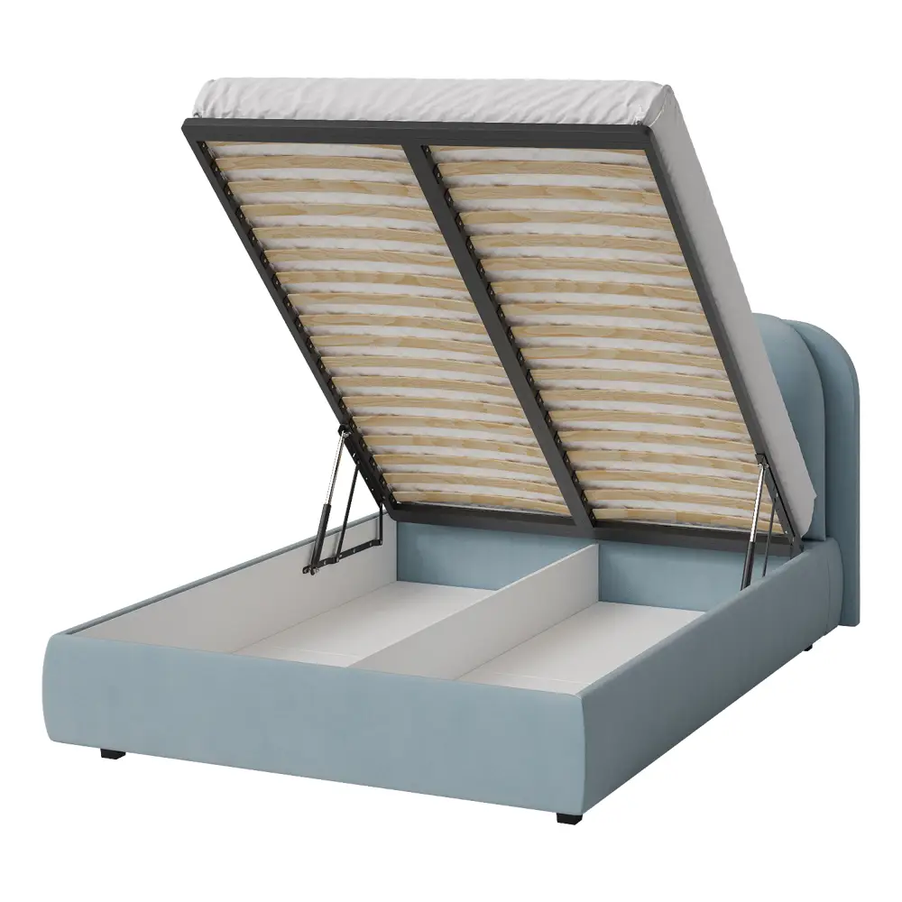 Кровать двуспальная мягкая BASSIA 140х200 с подъемным механизмом, ящиком для хранения и съемными подушками венге голубой