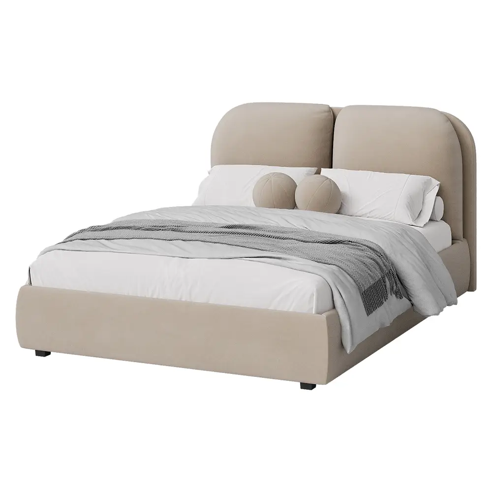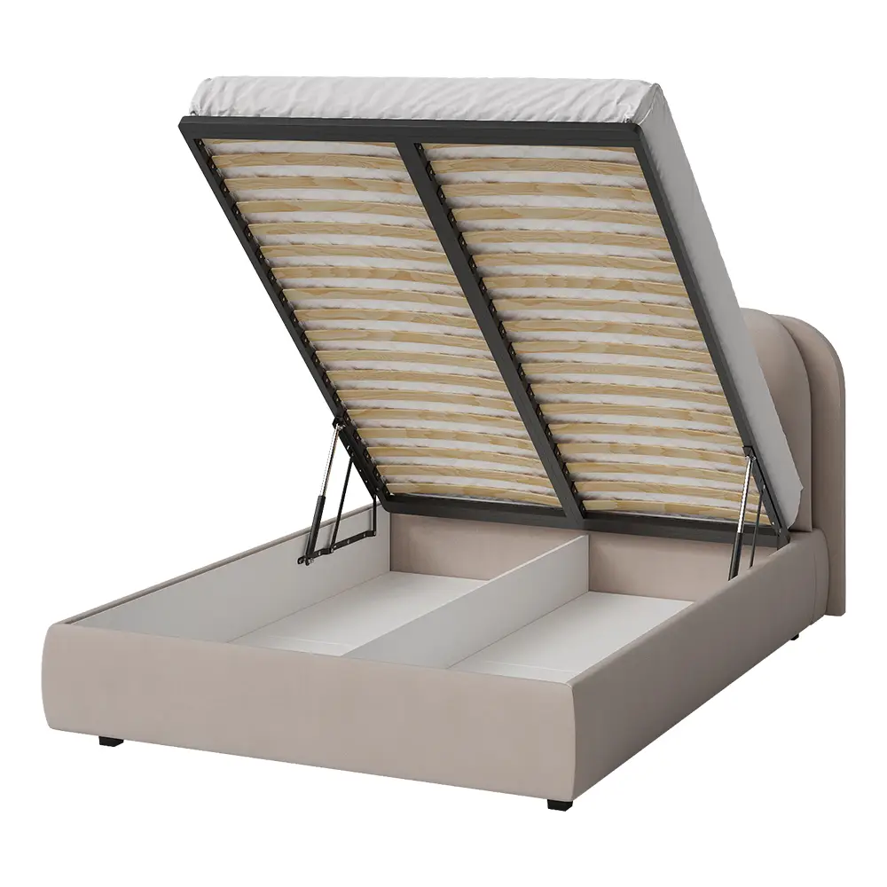 Кровать двуспальная мягкая BASSIA 140х200 с подъемным механизмом, ящиком для хранения и съемными подушками венге кремовый