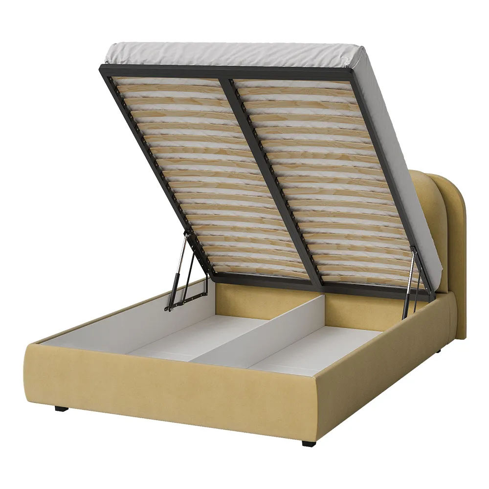 Элегантная и современная кровать. Благодаря продуманной конструкции изголовья, кровать превращается в многофункциональную зону отдыха, где можно не только спать, но и наслаждаться любимыми занятиями в комфортных условиях: вечернее чтение при мягком освещении, просмотр любимых сериалов, разговоры по телефону, утренний кофе в постели. Изножье имеет закругленные углы для дополнительной безопасности и эстетики. Кровать производится в нескольких вариантах тканей: из мягкого велюра, уютного букле и практичной рогожки. Все ткани отличаются исключительной мягкостью, высокой стойкостью к истиранию и легкостью в уходе. Ортопедическое основание изготовлено из прочной березовой фанеры, которое способствует правильному положение позвоночника во время сна и обеспечивает комфортный отдых. Подъемный механизм оснащен газлифтами, позволяющими легко и бесшумно открывать и закрывать спальное место. Вместительный бельевой ящик предоставляет достаточно пространства для хранения. Подушка шар в комплект не входит.