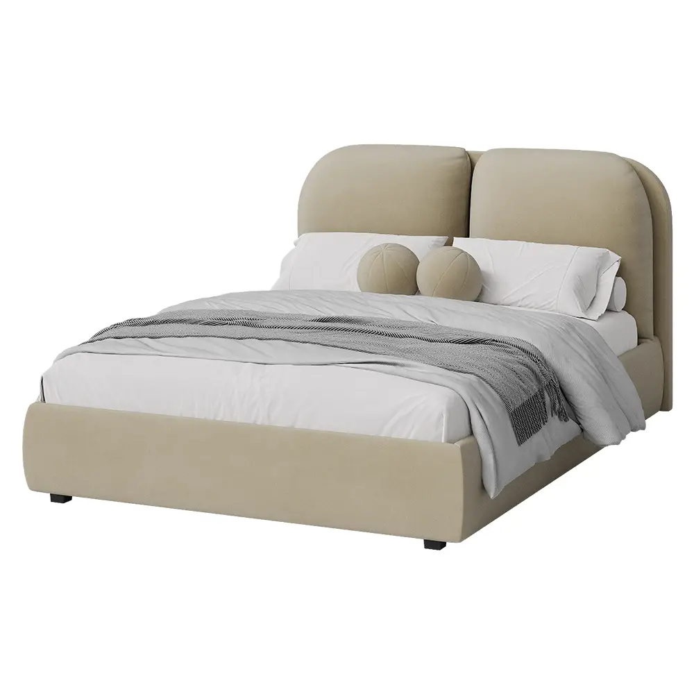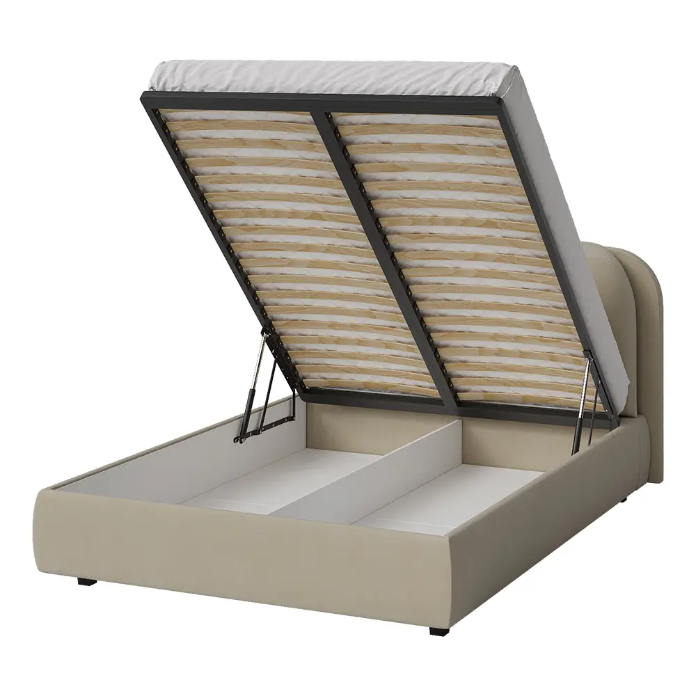 Кровать двуспальная мягкая BASSIA 140х200 с подъемным механизмом, ящиком для хранения и съемными подушками венге сливочный