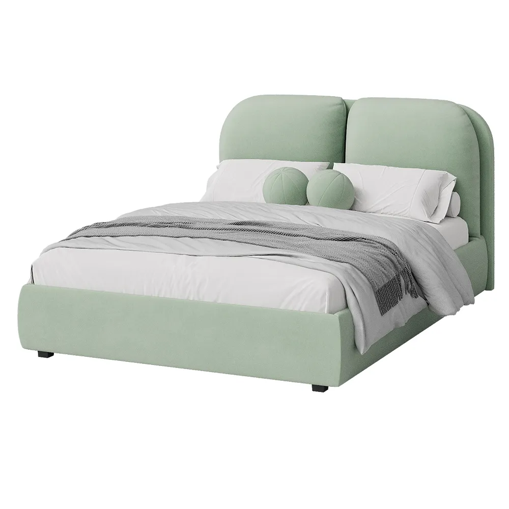 Кровать двуспальная мягкая BASSIA 160х200 с подъемным механизмом, ящиком для хранения и съемными подушками венге светло-зеленый