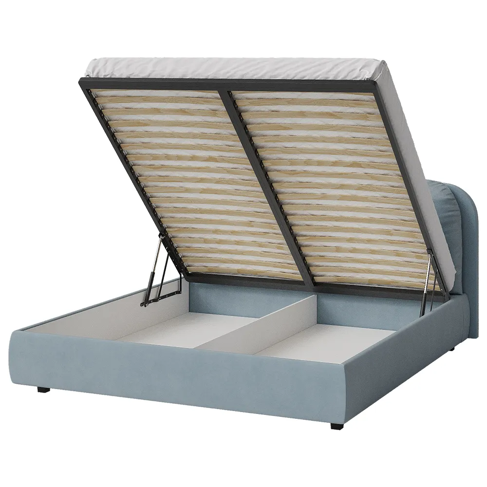 Кровать двуспальная мягкая BASSIA 180х200 с подъемным механизмом, ящиком для хранения и съемными подушками венге голубой