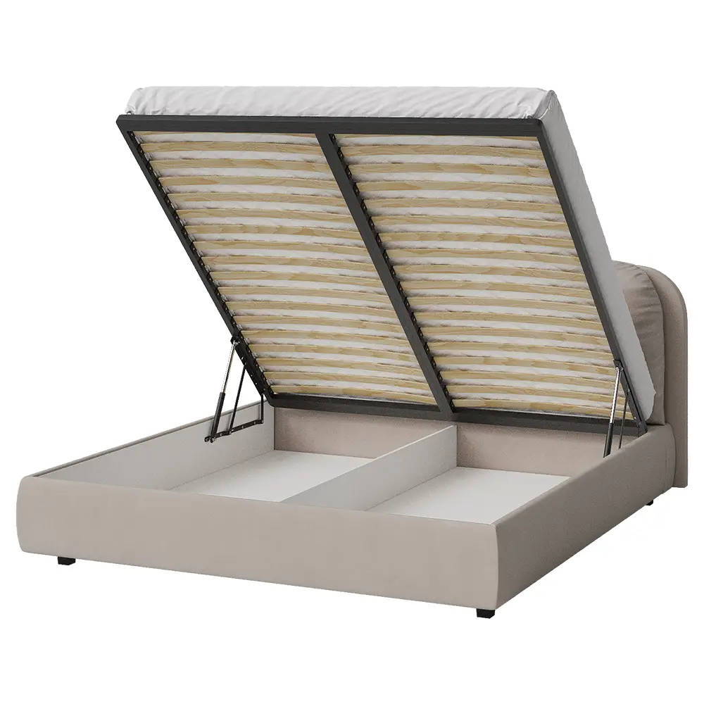 Элегантная и современная кровать. Благодаря продуманной конструкции изголовья, кровать превращается в многофункциональную зону отдыха, где можно не только спать, но и наслаждаться любимыми занятиями в комфортных условиях: вечернее чтение при мягком освещении, просмотр любимых сериалов, разговоры по телефону, утренний кофе в постели. Изножье имеет закругленные углы для дополнительной безопасности и эстетики. Кровать производится в нескольких вариантах тканей: из мягкого велюра, уютного букле и практичной рогожки. Все ткани отличаются исключительной мягкостью, высокой стойкостью к истиранию и легкостью в уходе. Ортопедическое основание изготовлено из прочной березовой фанеры, которое способствует правильному положение позвоночника во время сна и обеспечивает комфортный отдых. Подъемный механизм оснащен газлифтами, позволяющими легко и бесшумно открывать и закрывать спальное место. Вместительный бельевой ящик предоставляет достаточно пространства для хранения. Подушка шар в комплект не входит.