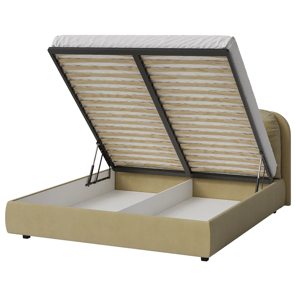 Элегантная и современная кровать. Благодаря продуманной конструкции изголовья, кровать превращается в многофункциональную зону отдыха, где можно не только спать, но и наслаждаться любимыми занятиями в комфортных условиях: вечернее чтение при мягком освещении, просмотр любимых сериалов, разговоры по телефону, утренний кофе в постели. Изножье имеет закругленные углы для дополнительной безопасности и эстетики. Кровать производится в нескольких вариантах тканей: из мягкого велюра, уютного букле и практичной рогожки. Все ткани отличаются исключительной мягкостью, высокой стойкостью к истиранию и легкостью в уходе. Ортопедическое основание изготовлено из прочной березовой фанеры, которое способствует правильному положение позвоночника во время сна и обеспечивает комфортный отдых. Подъемный механизм оснащен газлифтами, позволяющими легко и бесшумно открывать и закрывать спальное место. Вместительный бельевой ящик предоставляет достаточно пространства для хранения. Подушка шар в комплект не входит.