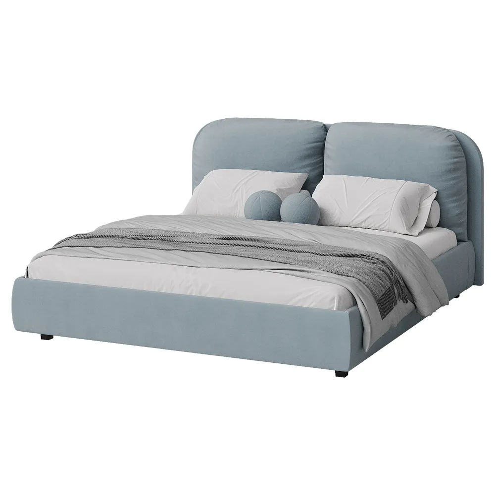 Кровать двуспальная мягкая BASSIA 200х200 с подъемным механизмом, ящиком для хранения и съемными подушками венге голубой