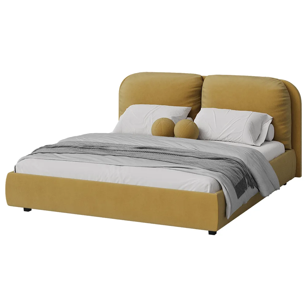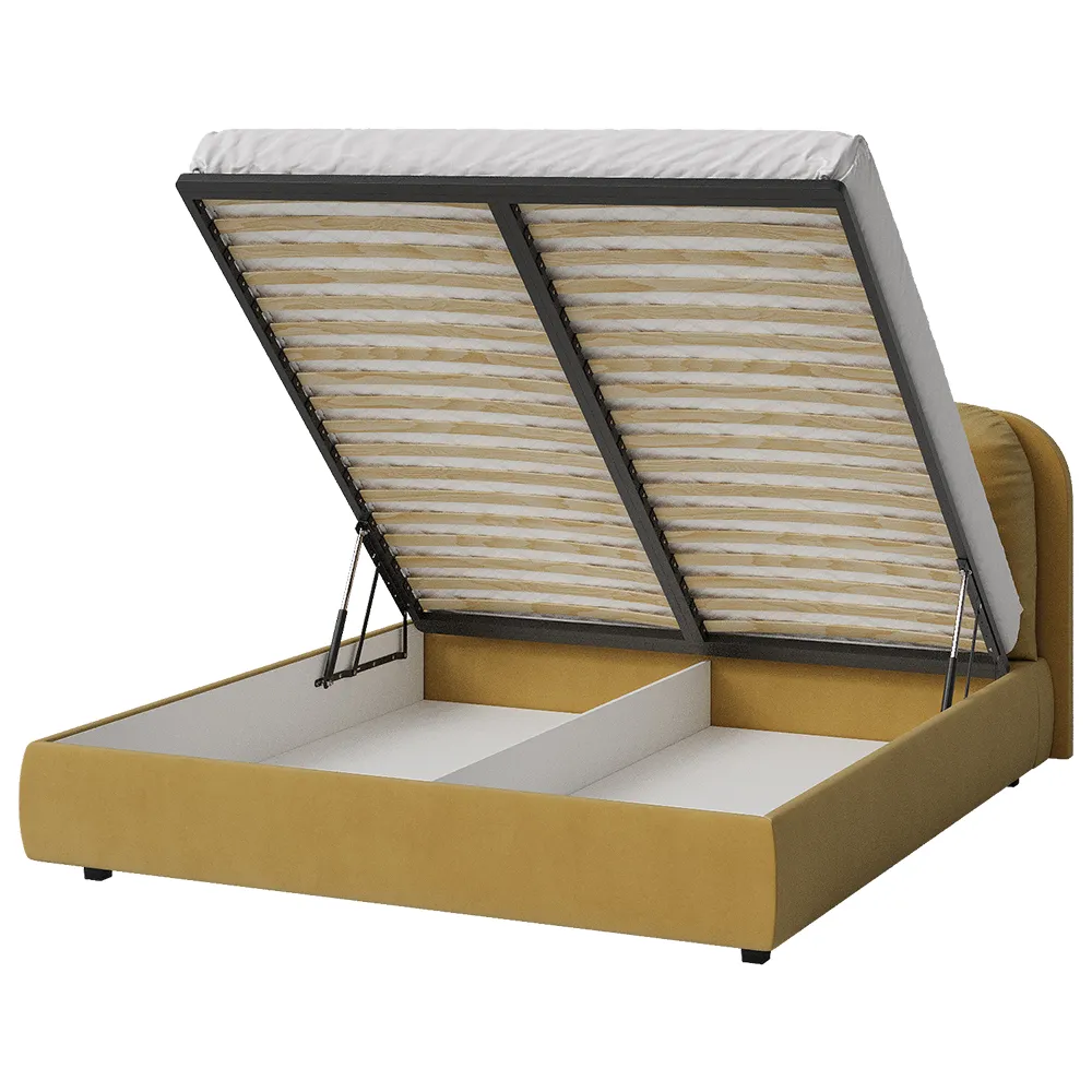 Кровать двуспальная мягкая BASSIA 200х200 с подъемным механизмом, ящиком для хранения и съемными подушками венге горчичный