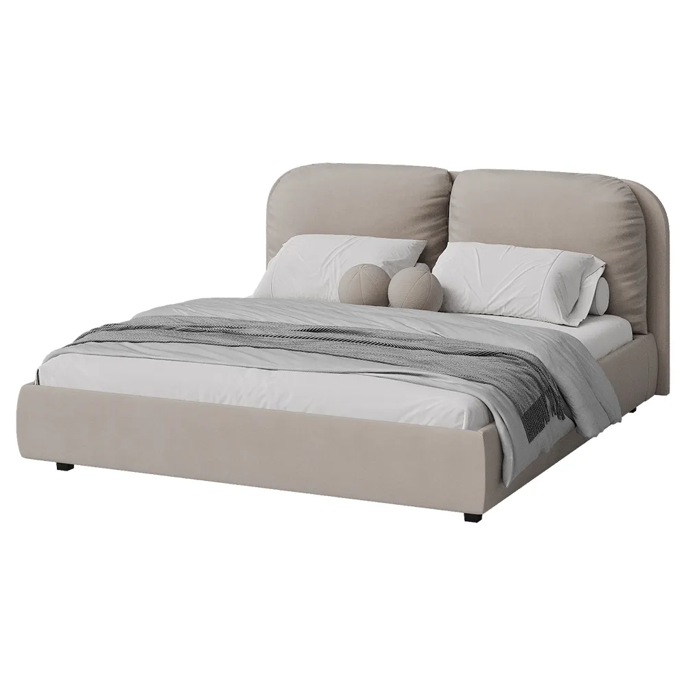 Кровать двуспальная мягкая BASSIA 200х200 с подъемным механизмом, ящиком для хранения и съемными подушками венге кремовый