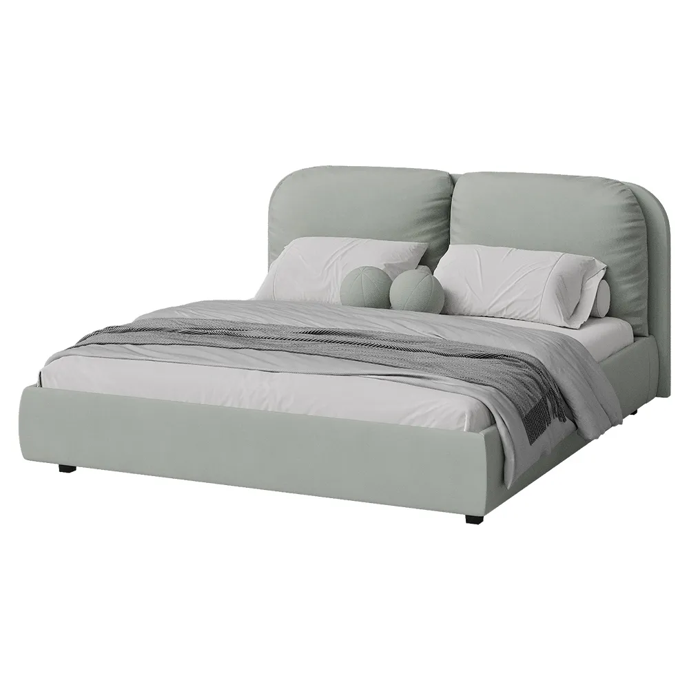 Кровать двуспальная мягкая BASSIA 200х200 с подъемным механизмом, ящиком для хранения и съемными подушками венге серо-зеленый