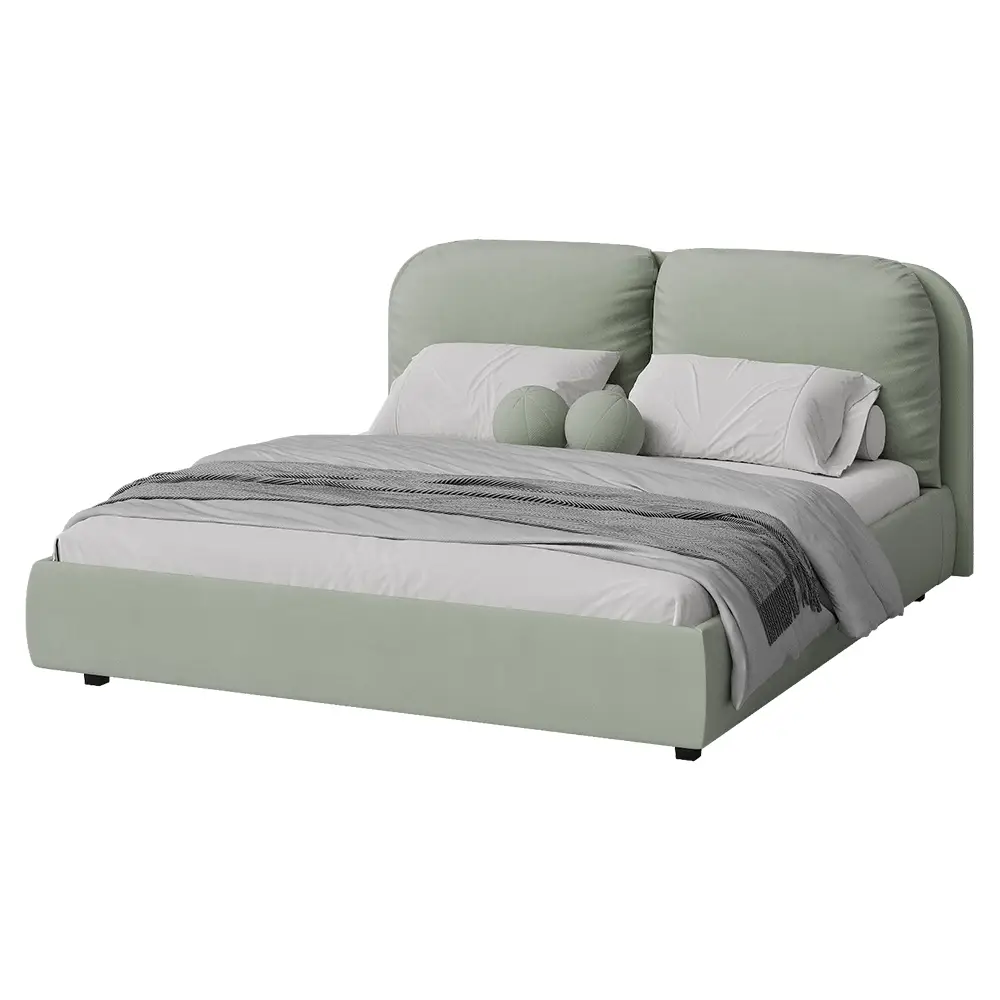 Кровать двуспальная мягкая BASSIA 200х200 с подъемным механизмом, ящиком для хранения и съемными подушками венге светло-зеленый