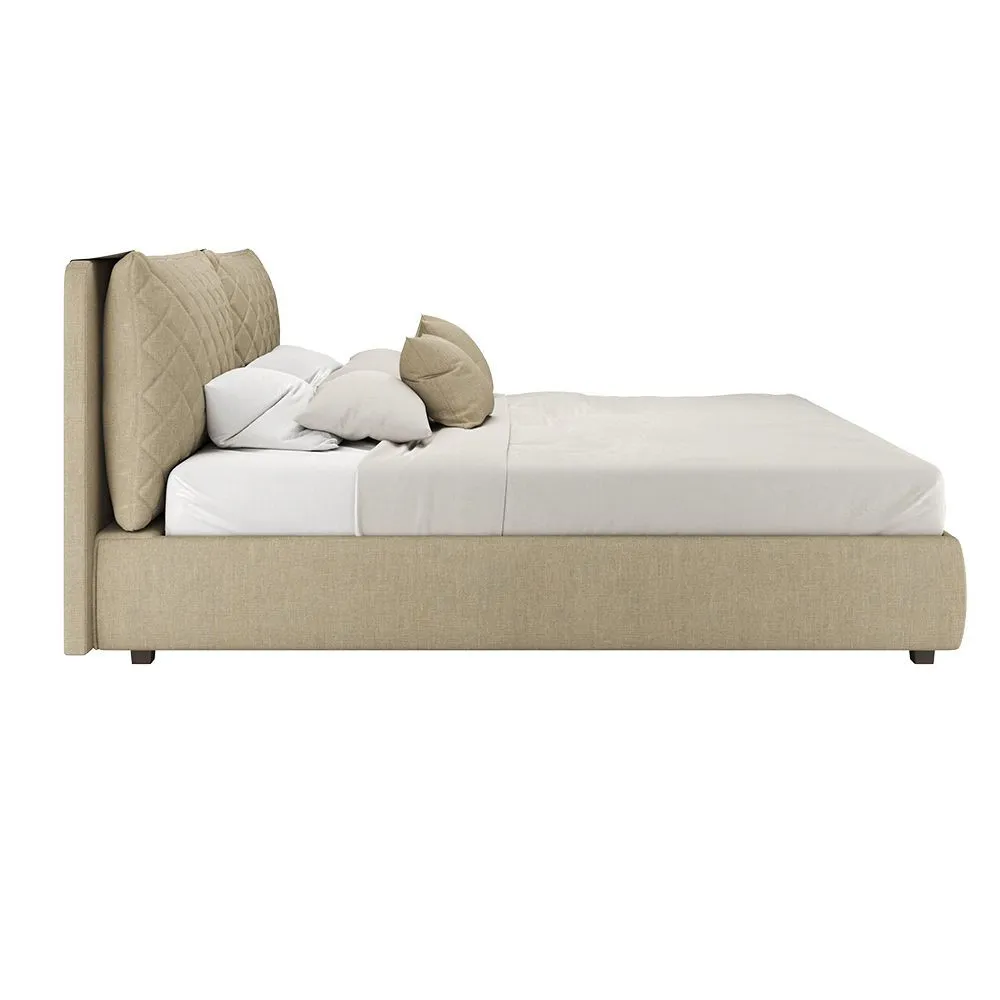 Кровать двуспальная мягкая DIONISIA 180х200, с подъемным механизмом, ящиком для хранения и съемными подушками с прострочкой шанель, темный орех беже